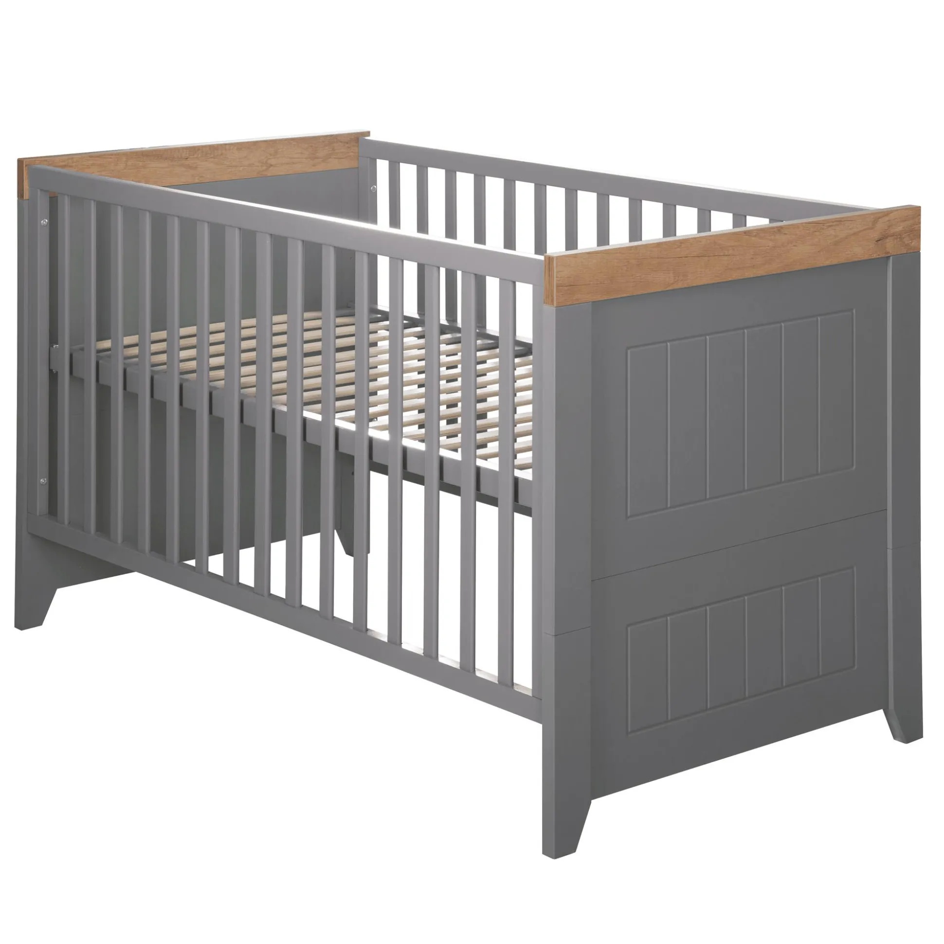 Das bezaubernde Kinderbett Ella bietet deinem Baby einen sicheren und geborgenen Schlafplatz sowie viele praktische Funktionen. Es ist 3-fach höhenverstellbar und verfügt über insgesamt drei herausnehmbaren Schlupfsprossen im Gitterelement. Mit den separat erhältlichen Umbauseiten kann das Kinderbett einfach zu einem Juniorbett umgebaut werden.