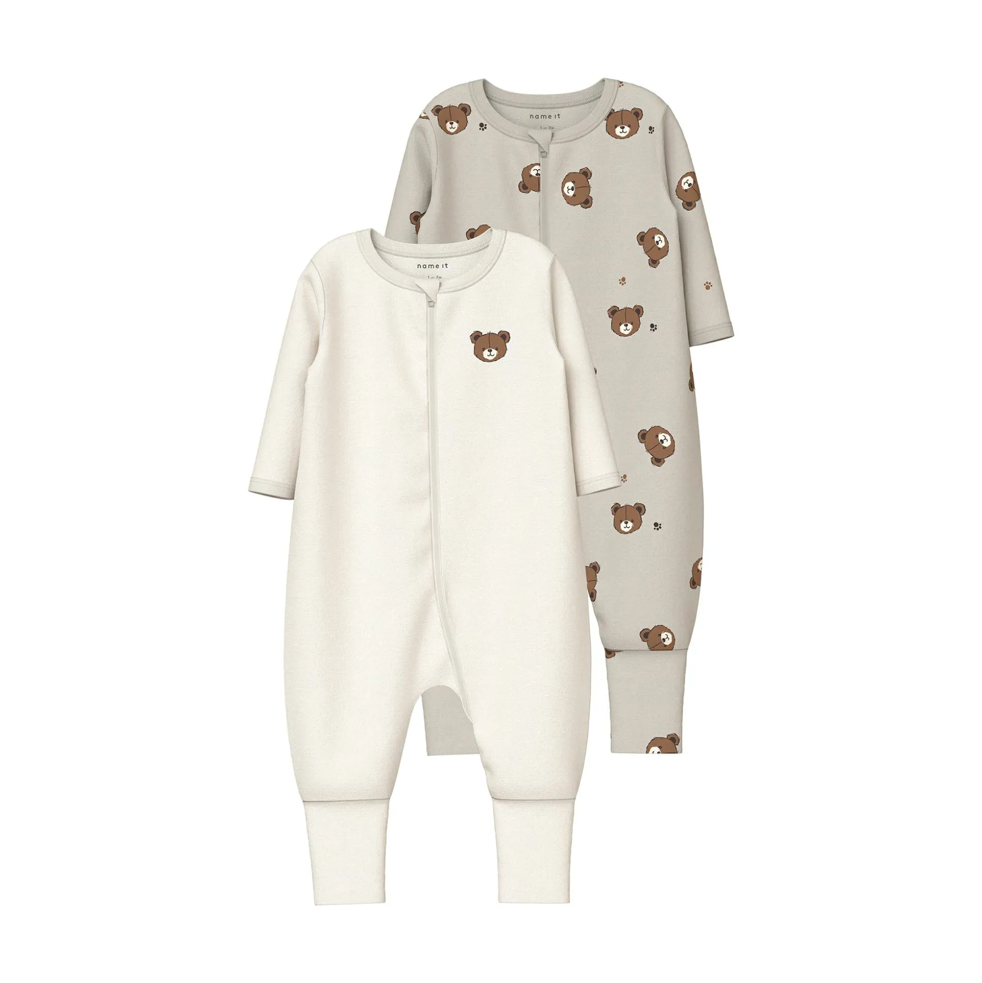 Das 2er-Set Schlafanzüge Bärchen von name it besteht aus einer hochwertigen Mischung aus 51% Baumwolle und 49% Bio-Baumwolle, die besonders weich und angenehm auf der Haut deines Schatzes liegt. Die Schlafanzüge sind ideal für gemütliche Nächte und sorgen dank des praktischen Reißverschlusses mit Kinnschutz für ein einfaches An- und Ausziehen.