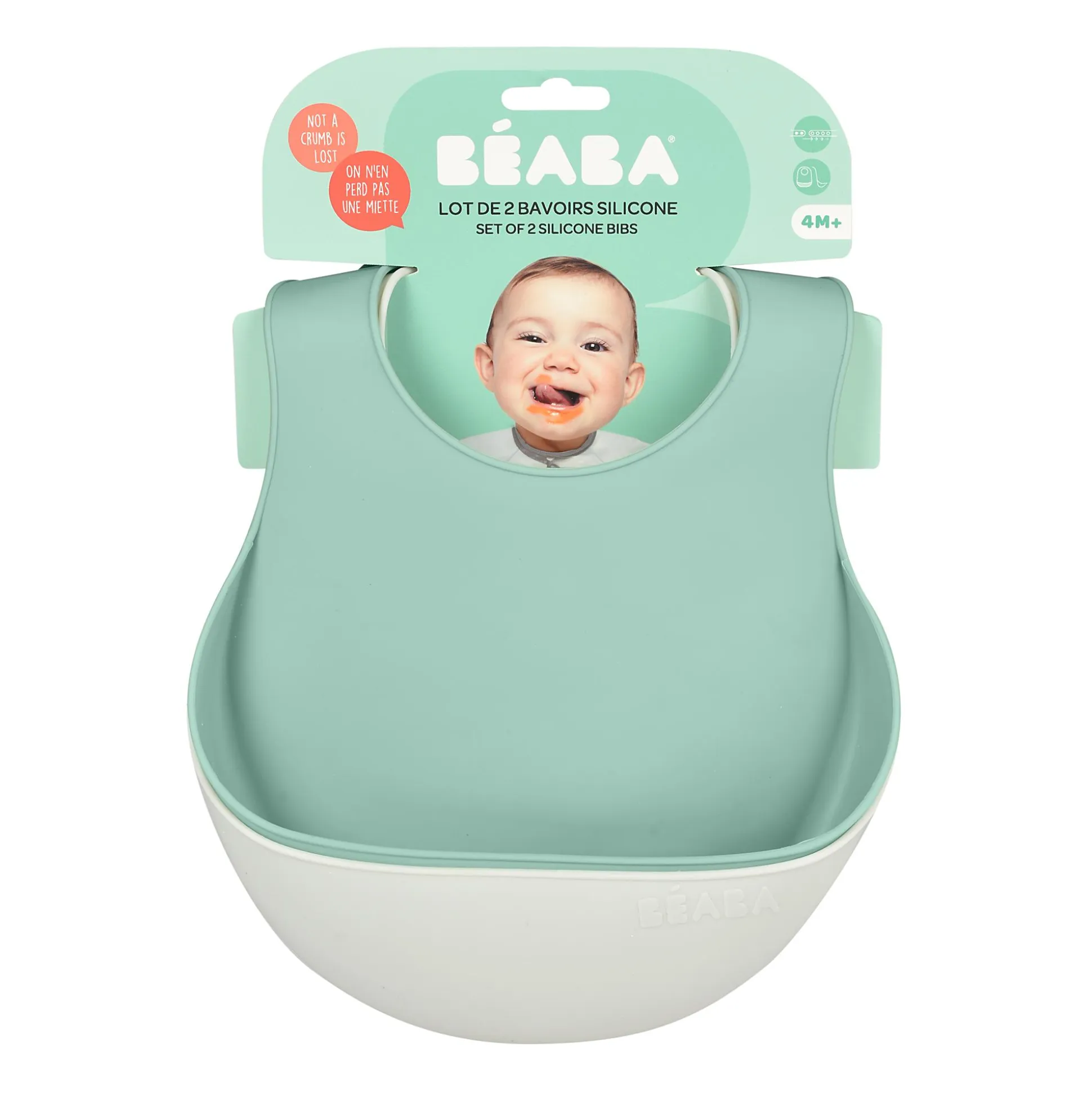 Dieses Silikon-Lätzchen von BÉABA ist ein unverzichtbarer Begleiter jeder Baby-Mahlzeit!