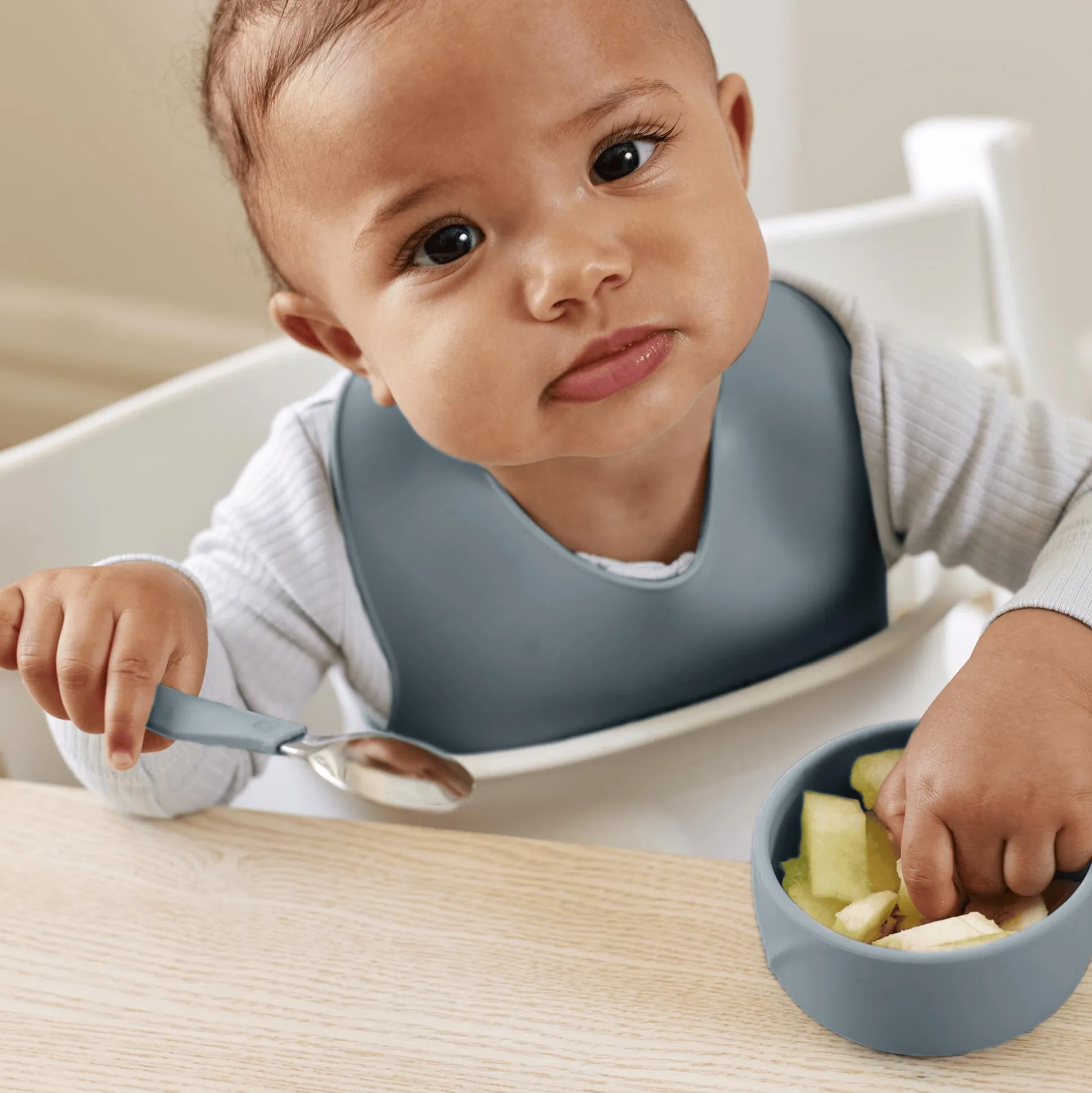 - erleichtert das selbstständige Essen dank rutschfestem Material und handlicher Größe