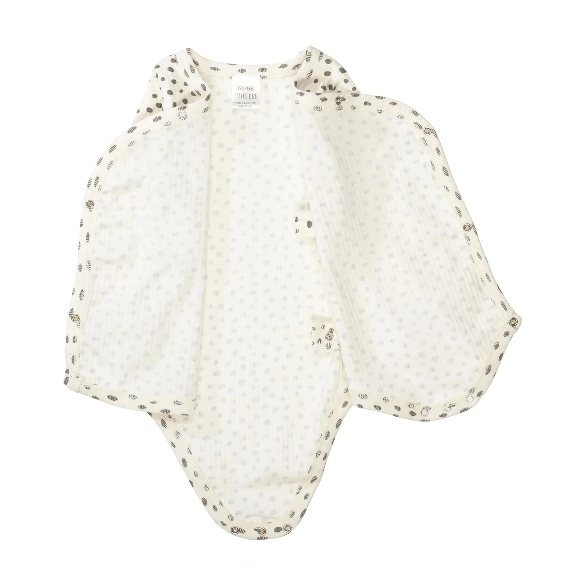 Das 2er-Set Wickelbodys von LITTLE ONE überzeugt mit niedlichen Mustern und einem angenehmen Tragekomfort. Hergestellt aus 95% Bio-Baumwolle und 5% Elasthan, sind die Bodys weich und hautfreundlich. Dank der praktischen Wickeltechnik mit Druckknöpfen wird das An- und Ausziehen besonders einfach gemacht.