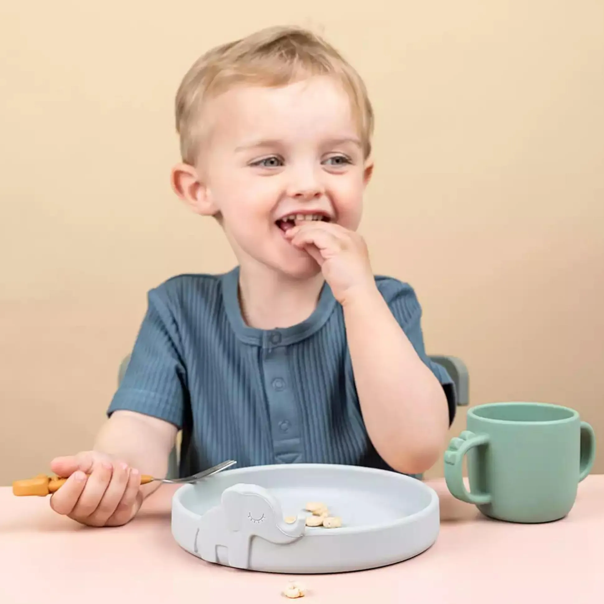 Das Peekaboo 3-teilige Geschirr-Set von done by deer soll die Neugier kleiner Esser wecken. Elphee, Raffi und Wally lugen aus dem Geschirr hervor und machen das Essen zu einer besonders unterhaltsamen Zeit des Tages. Die süße Schale, die Gabell und der praktische Becher sind aus lebensmittelechtem Silikon. Es macht das Peekaboo-Geschirr bruchsicher und fügt Anti-Rutsch-/ griffige Eigenschaften hinzu und macht die Peekaboo-Schüssel für die Verwendung in der Mikrowelle geeignet. Deine Kleinen werden es genießen, wenn die lustigen Tiere mit ihnen essen.