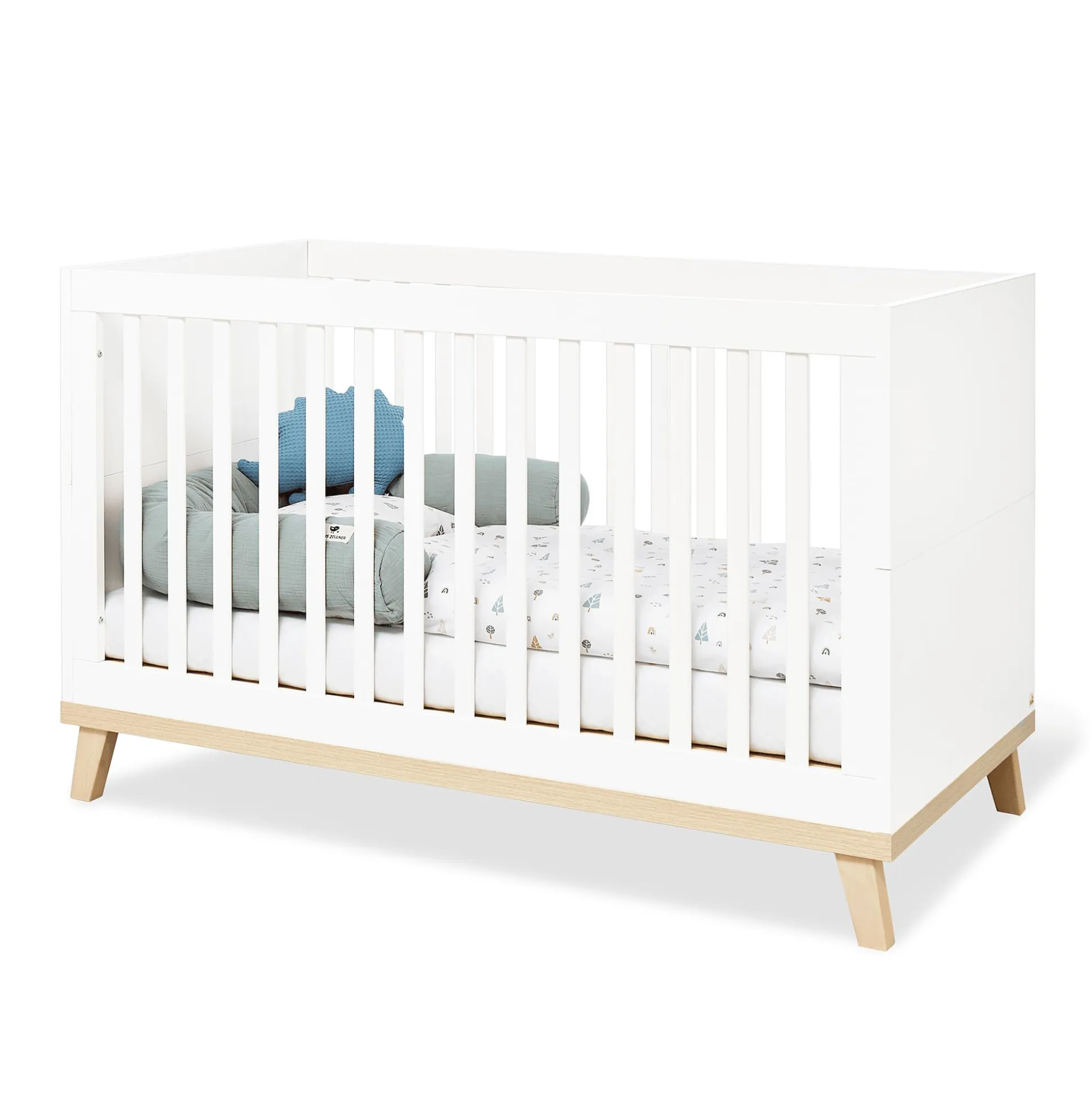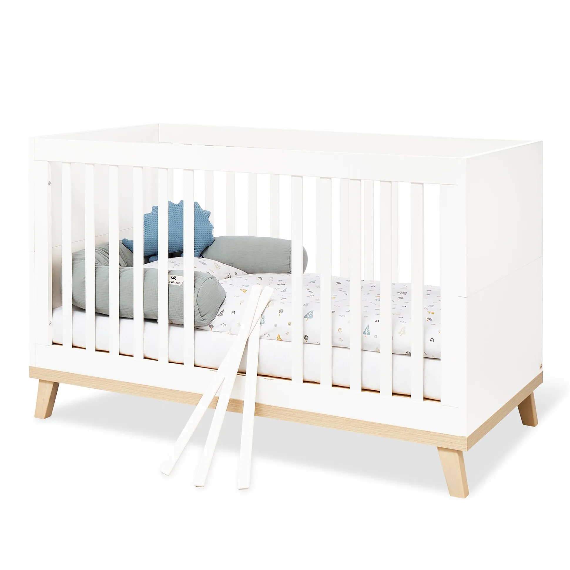 In dem wunderschönen Kinderbett Larsson von Pinolino wird dein kleiner Schatz beruhigt und komfortabel schlafen können. Ein 3-fach höhenverstellbares Lattenrost erhältst du inklusive. Die Gitterseiten sind mit Flachstäben versehen – eines der Seitengitter besitzt zudem drei Schlupfsprossen. Mit den separat erhältlichen Umbauseiten kannst du das Bett ganz einfach in ein Juniorbett verwandeln und besonders lange nutzen. Das Kinderbett Larsson passt dank des zeitlosen und wunderschönen Designs in jedes Kinderzimmer. Weitere Möbel aus dem Kinderzimmer Larsson von Pinolino sind separat erhältlich.