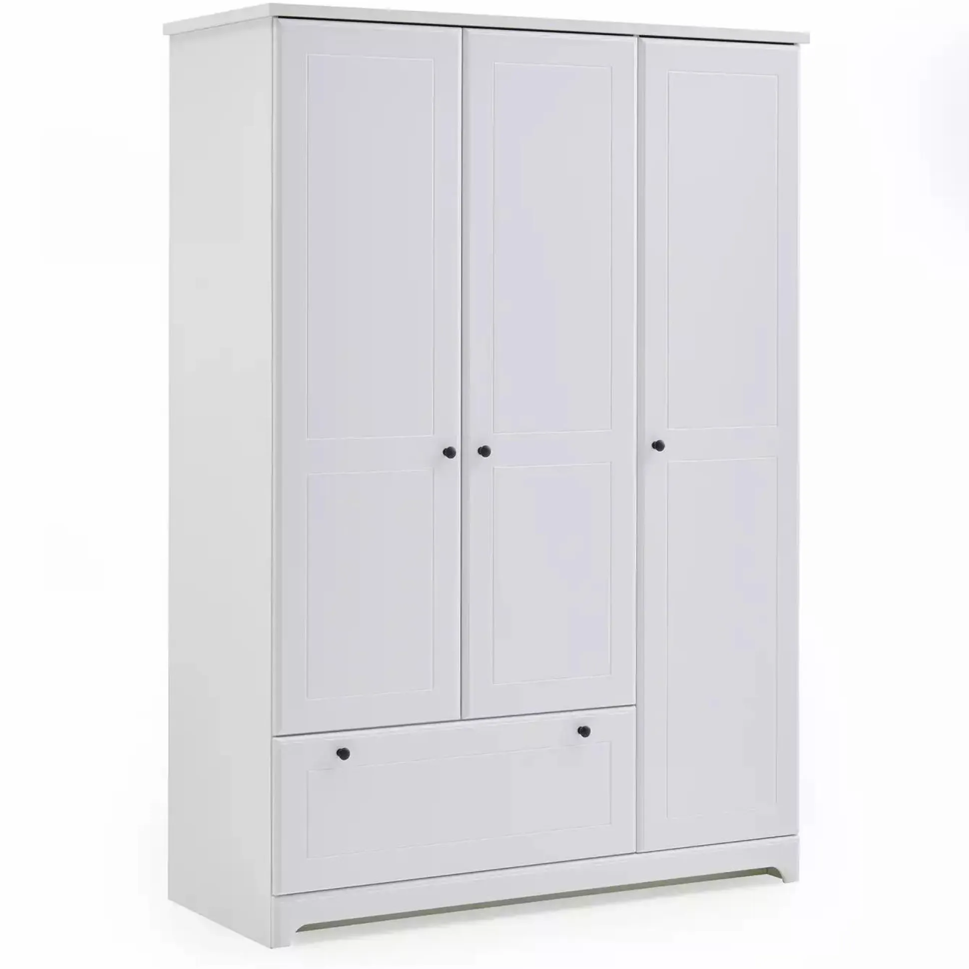 Der bezaubernde, 3-türige Kleiderschrank Gretha von Arthur Berndt bietet eine Menge Platz für Kleidung, Spielzeug und mehr. Die Schublade und mehrere Fächer sowie die Kleiderstange ermöglichen eine tolle Ordnung und Übersichtlichkeit im Schrank.