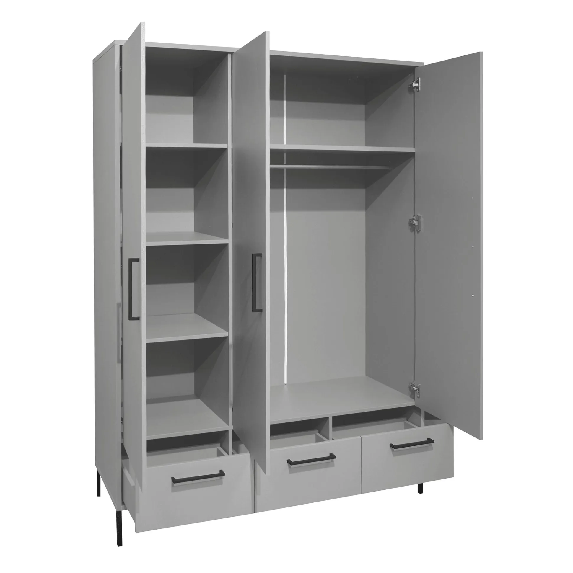 - Stauraum: 3 Schubkästen, mehrere Mittelböden, eine Kleiderstange