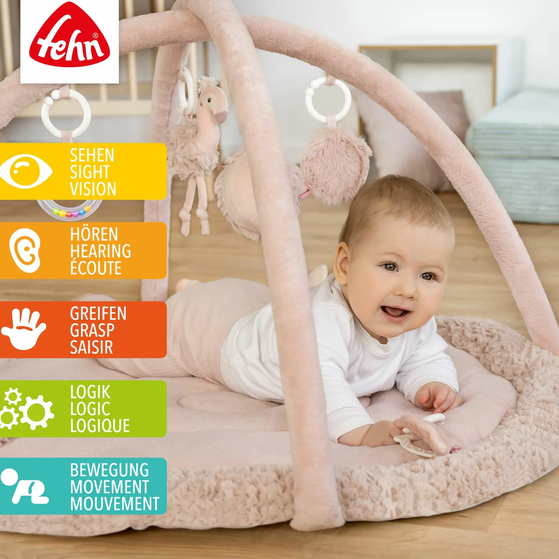 Die 3D Activity Decke Flamingo von fehn bietet deinem kleinen Schatz bereits ab der Geburt eine kuschelweiche, gepolsterte Liegefläche und abwechslungsreiche Spielmöglichkeiten.