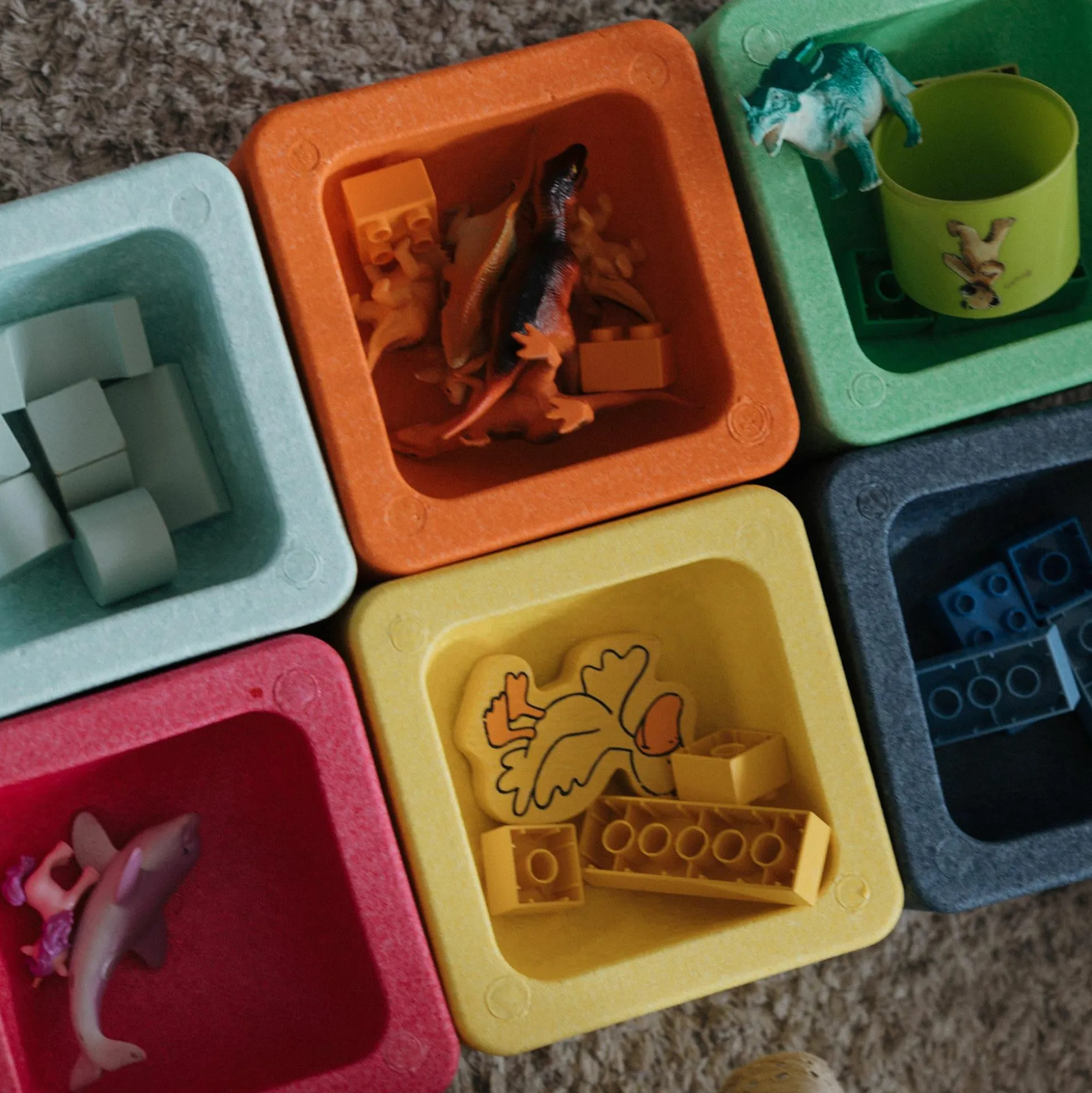 Gefertigt aus recyceltem Material, zeichnen sie sich durch Langlebigkeit und Robustheit aus, sind UV-beständig, färben nicht ab, sind speichel- und wasserfest.
