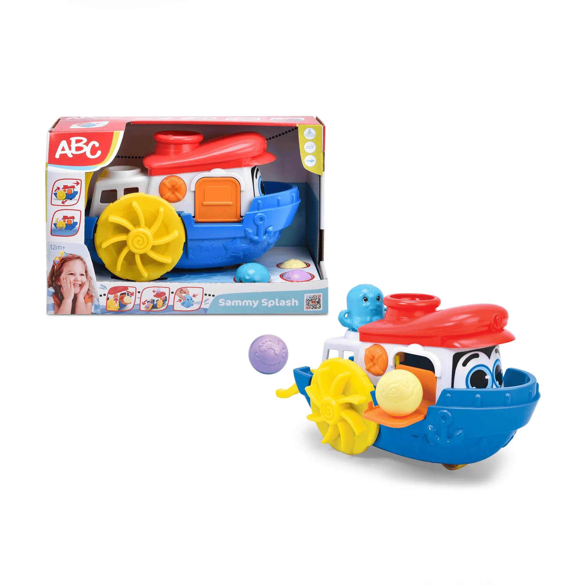 Das ABC Sammy Splash von Simba ist ein tolles schwimmendes Badespielzeug für deinen kleinen Schatz ab etwa einem Jahr. Mit seinem knallbunten Design und dem frechen Oktopus Sammy, der fröhlich Wasser spritzt, bringt es jede Menge Spaß in die Badezeit. Das fahrbare Boot mit seinen Rädern lässt sich leicht über die Wanne bewegen und sorgt für spannende Verfolgungsjagden auf hoher See – oder in der Badewanne! Die großen Bälle mit niedlichen Tiermotiven können durch den Kamin gerollt werden und plätschern dann fröhlich die Rutsche hinunter ins Wasser. Durch einen einfachen Knopfdruck öffnet sich die Seitenklappe, um weitere Überraschungen zu enthüllen – perfekt, um die Neugierde deines Kleinen zu wecken.