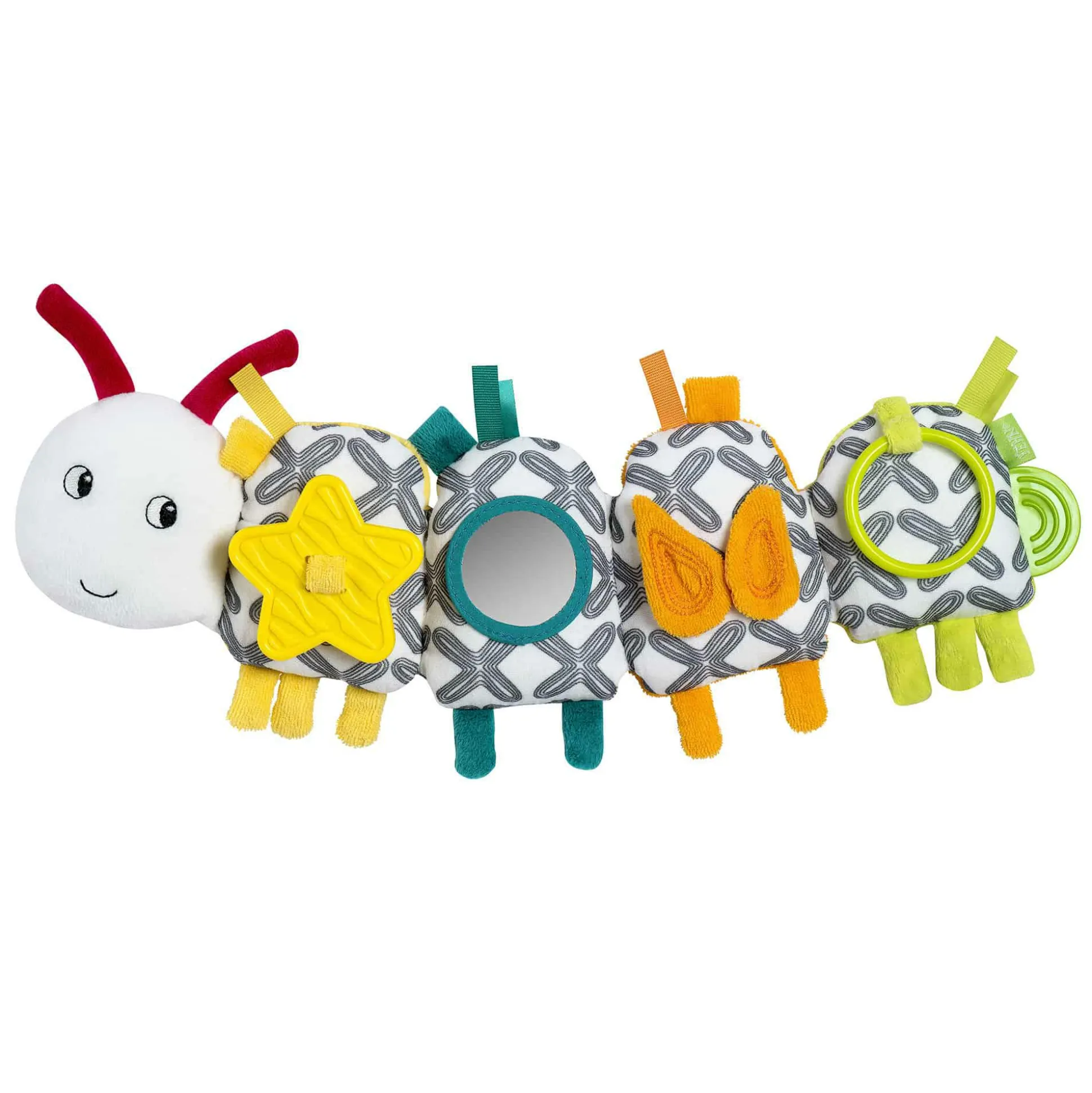 Jeder Abschnitt der weichen Raupe hält verschiedene Materialien und spannende Elemente bereit, die zum Erkunden einladen. So wird dein Baby spielerisch in seiner sensorischen Wahrnehmung gefördert und lernt, unterschiedliche Oberflächen zu ertasten. Der integrierte Spiegel weckt das Interesse am eigenen Spiegelbild und unterstützt die visuelle Entwicklung. Gleichzeitig laden die bunten Knister- und Rasselgeräusche zum Lauschen ein und fördern die auditive Wahrnehmung.