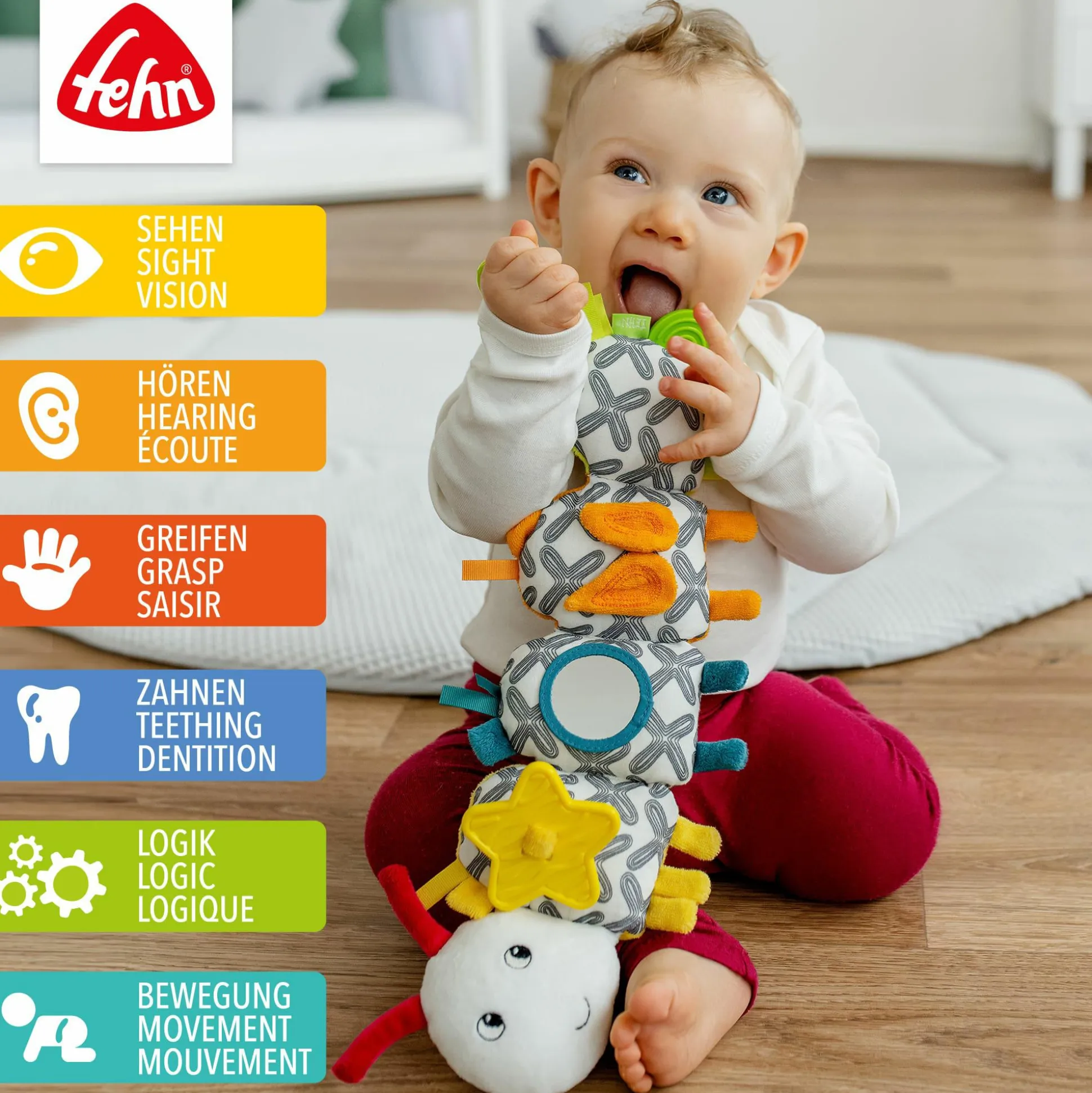 Die Activity-Raupe von fehn bringt bunte Freude und spannende Entdeckungen in den Alltag deines Babys – perfekt für kleine Forscher ab ca. 3 Monaten. Mit ihrem fröhlichen, mehrfarbigen Design lädt sie zum Greifen, Tasten und Lauschen ein und weckt die Neugier deines kleinen Lieblings auf spielerische Weise.