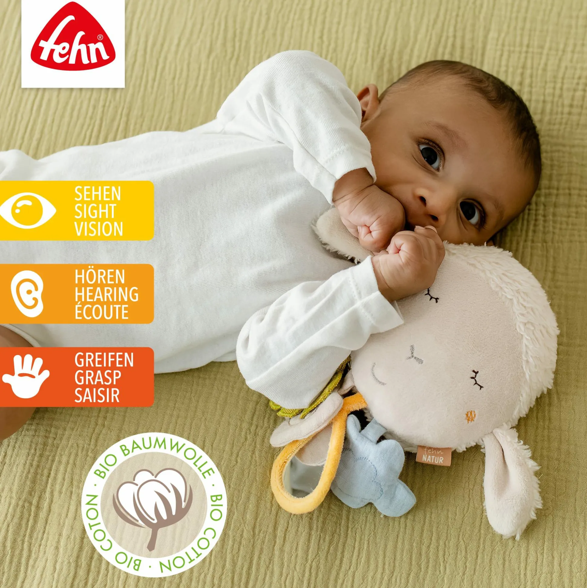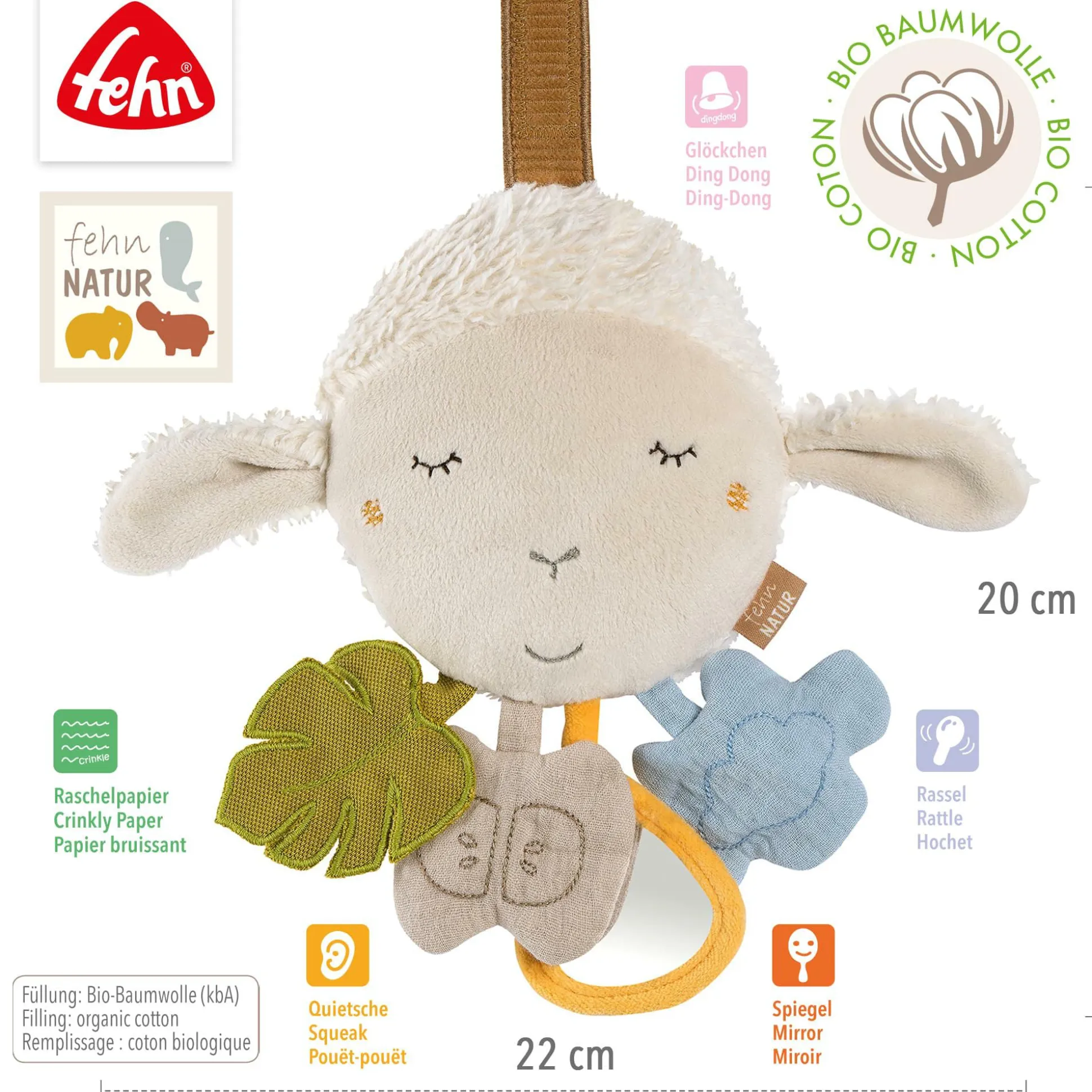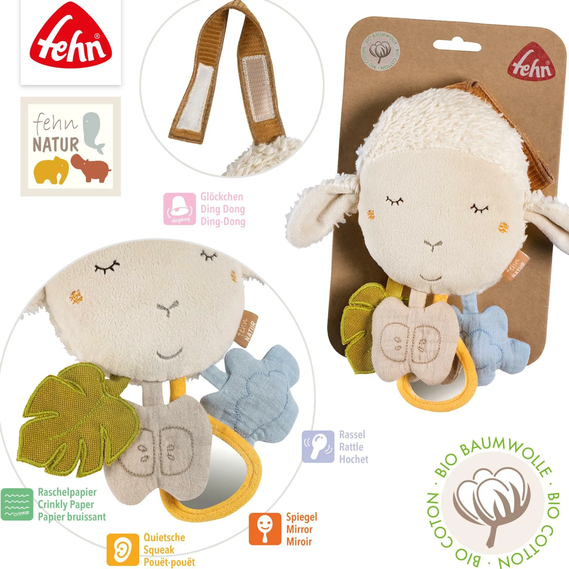Mit dem Activity-Schaf von fehn werden alle Sinne deines Babys aktiviert. Dieses Greif-Spielzeug vereint Raschelpapier, Glöckchen, Quietsche, Rassel und Spiegel, die von einem kuscheligen Schaf zusammengehalten werden. Dein Kind wird es lieben, die verschiedenen Materialien zu erkunden und dabei spielerisch seine Sinne und motorischen Fähigkeiten zu entwickeln. Als Teil der fehnNATUR® Kollektion besteht auch das Activity-Schaf aus kontrollierter Bio-Baumwolle.