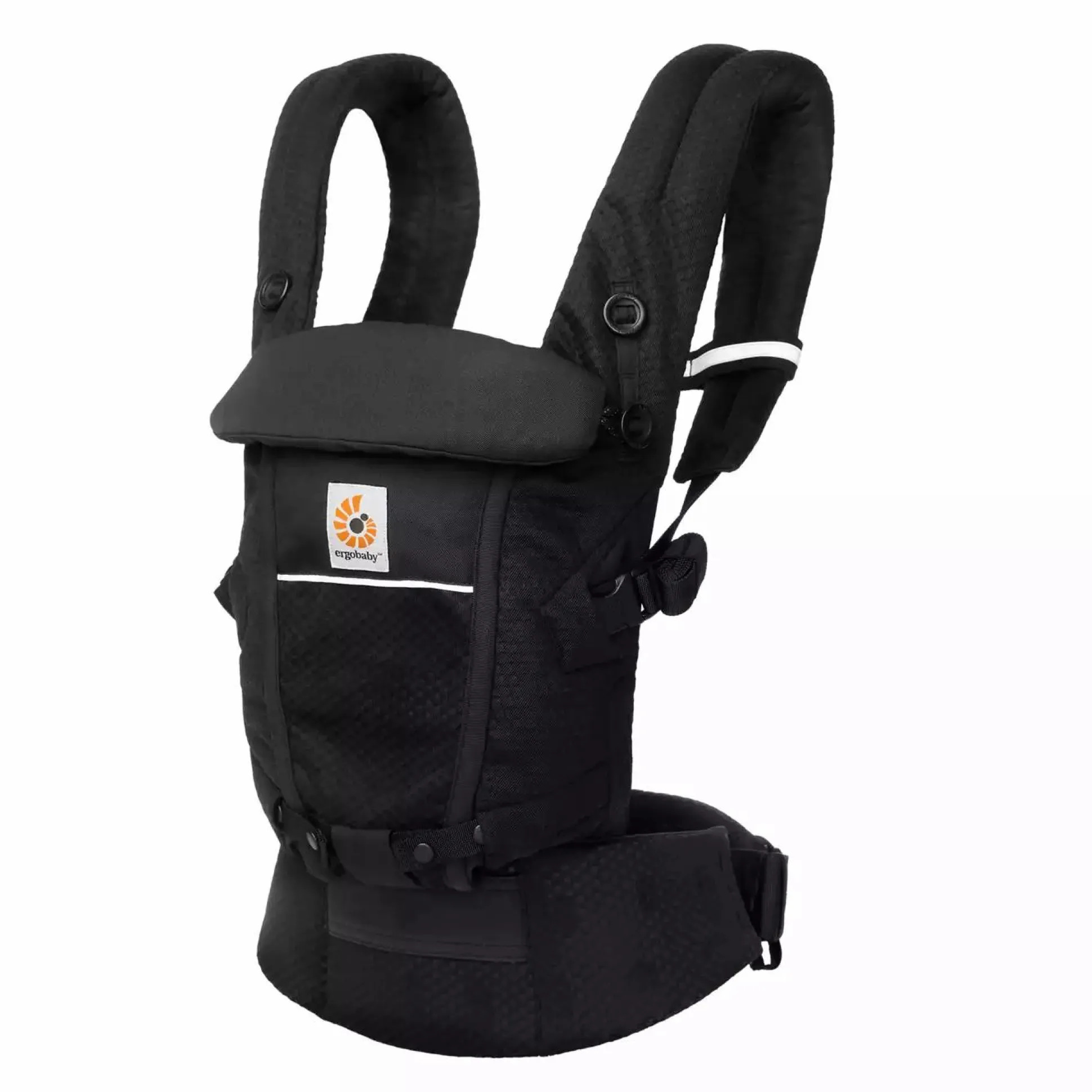 Apropos: Unterstützt wird der Tragekomfort durch einen Taillengurt mit Lordosenstütze, die für eine gleichmäßige Gewichtsverteilung auf Hüfte und Schultern sorgt. Außerdem ist die Adapt Babytrage mit individuell verstellbaren Schultergurten ausgestattet, die optional auch über Kreuz getragen werden können.