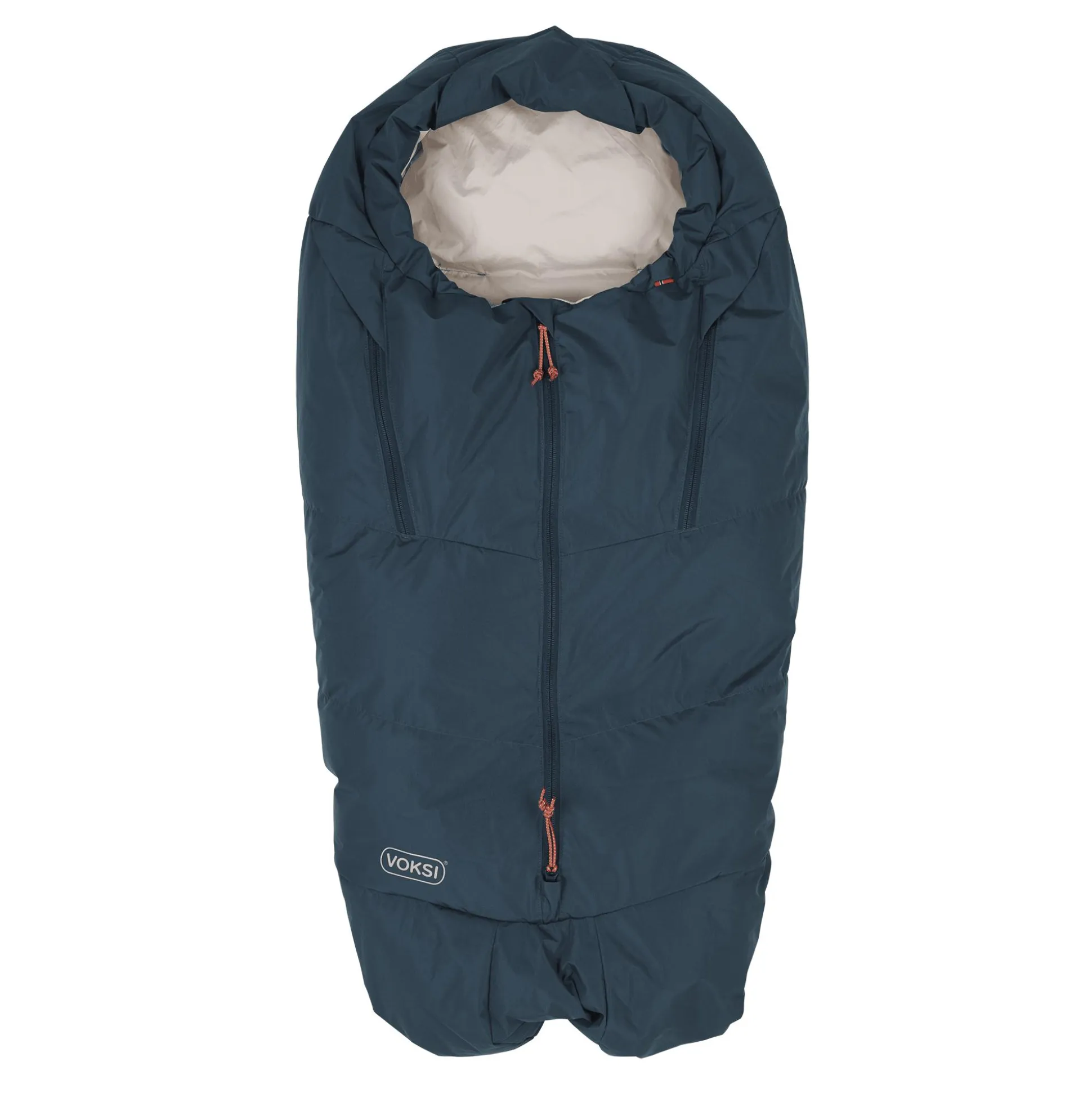 Die Materialien dieses Winterfußsacks können mit einer leichten und weichen Daunenjacke verglichen werden, deren weiche Stoffe sich leicht um den Körper des Kindes wickeln lassen. Die Füllung besteht aus hochwertigen Daunen (90/10) und der Fußsack ist mit einer einzigartigen Boxkonstruktion ausgestattet, die das Eindringen von Kälte verhindert. Die Luft zwischen den Daunenfasern sorgt für maximale Isolierung, daher sollte der Voksi® Fußsack vor Gebrauch geschüttelt und ohne Kompression luftig gelagert werden. Im Lieferumfang ist ein Kompressionsbeutel enthalten, sodass der Fußsack klein gemacht werden kann, was ideal auf Reisen ist.