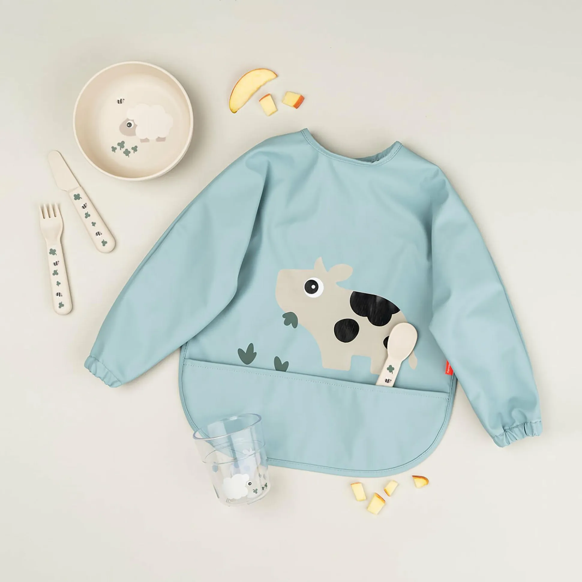 Das Ärmellätzchen Tiny Farm von done by deer begleitet deinen kleinen Schatz ab ca. 6 Monaten bis ca. 18 Monaten beim leckeren Essen. Mit seinem niedlichen Design und dem lustigen Kuh-Motiv bringt es gute Laune an jeden Esstisch.