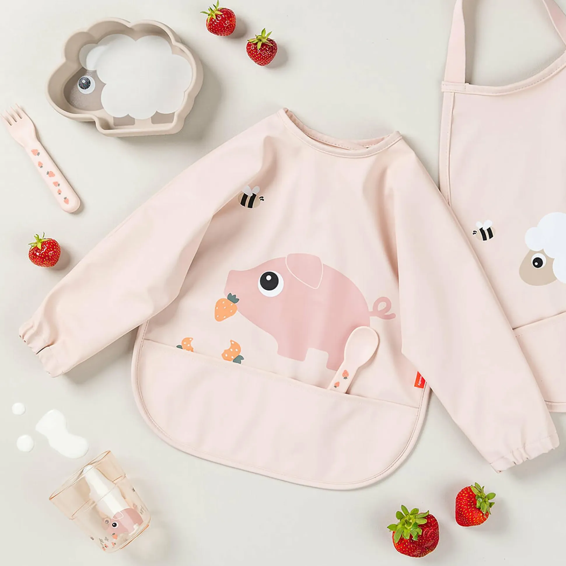 Das Ärmellätzchen Tiny Farm von done by deer begleitet deinen kleinen Schatz ab ca. 6 Monaten bis ca. 18 Monaten beim leckeren Essen. Mit seinem niedlichen Design und dem lustigen Schweinchen-Motiv bringt es gute Laune an jeden Esstisch.