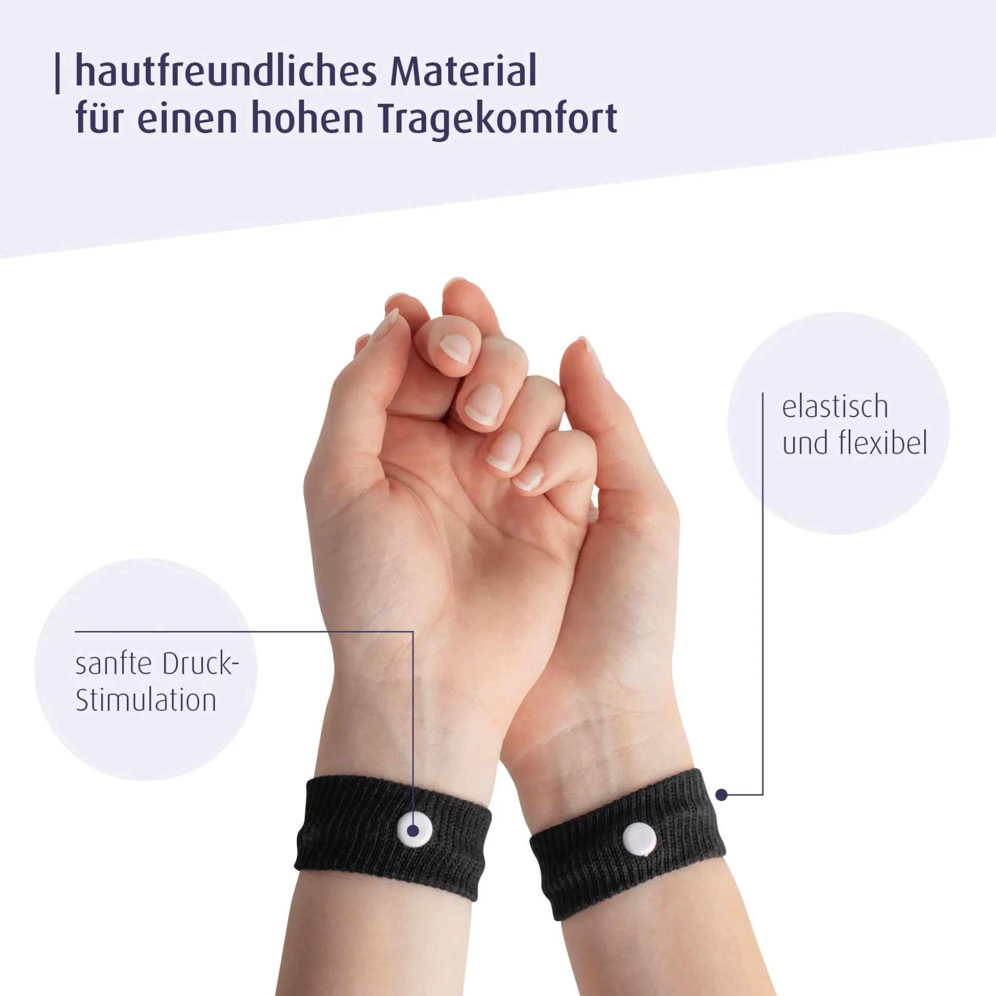 Für einen hohen Tragekomfort sorgt das flexible sowie elastische Material, das von DermaTest für seine hohe Hautverträglichkeit ausgezeichnet wurde. Das waschbare Armband lässt sich ideal an dein Handgelenk anpassen und kann auch nach der Schwangerschaft auf Reisen gegen die Übelkeit genutzt werden.