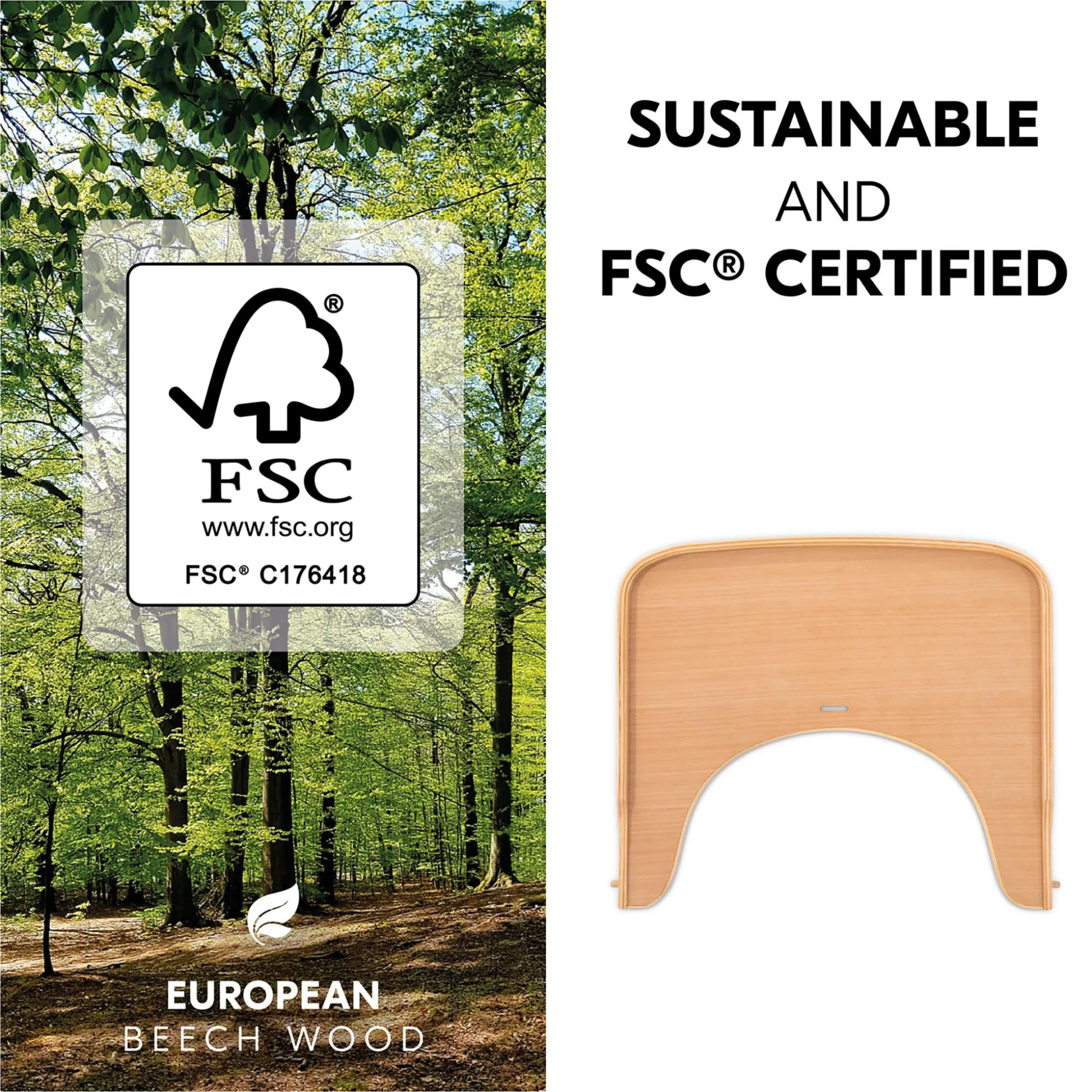 Besonders toll ist auch, dass der Wooden Tray aus nachwachsendem Buchenholz besteht. Natürlich lässt sich der Esstisch auch in Verbindung mit dem 5-Punkt-Gurt, Schrittgurt sowie vielzähligen Hochstuhlauflagen verwenden. Zudem ist er pflegeleicht und lässt sich nach dem Essen einfach abwischen.