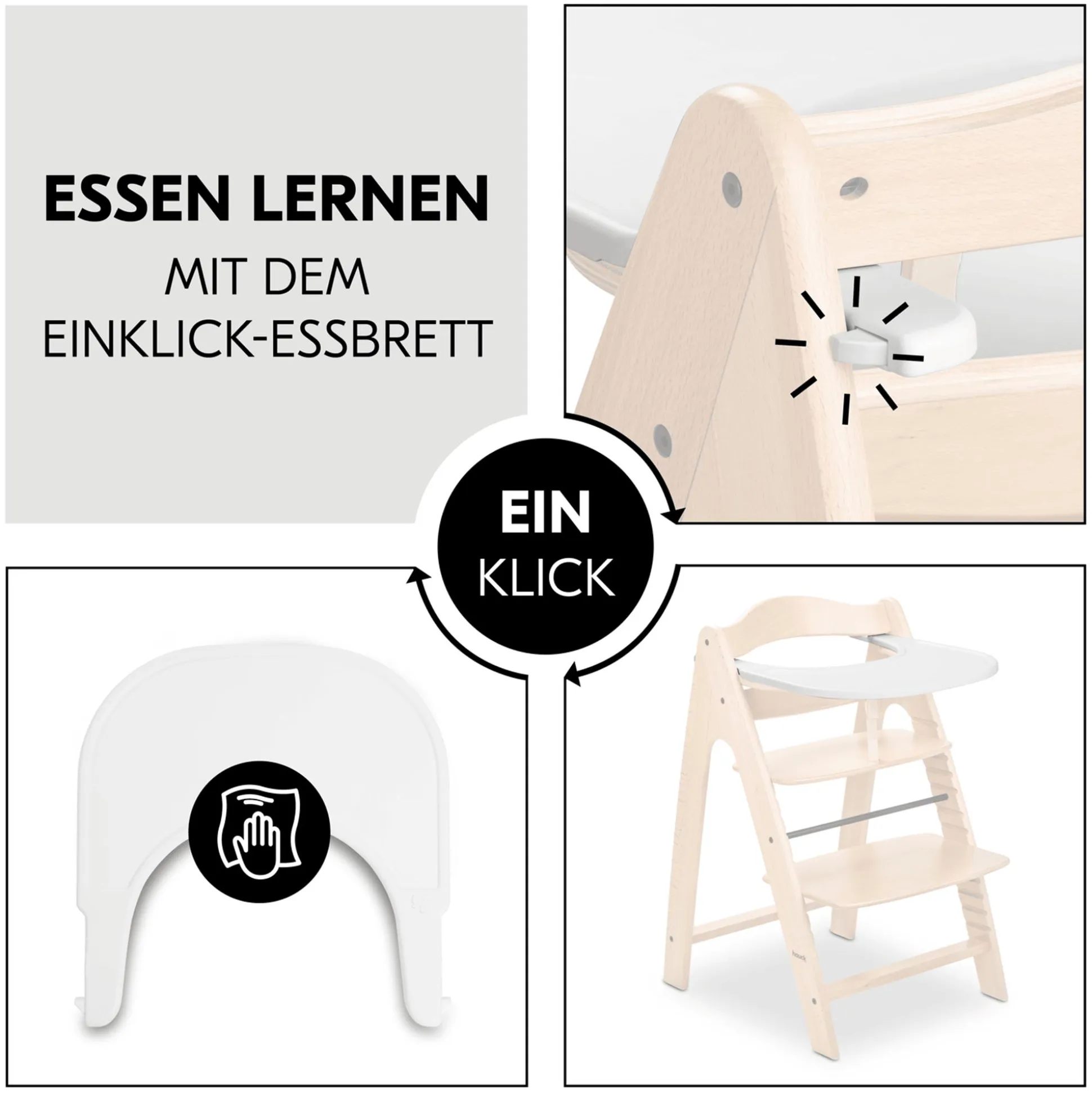 - auf dem Arketa Click Tray (separat erhältlich – Artikel-Nr. 58537330) hat dein Kind viel Platz zum Essen erforschen und Spielen