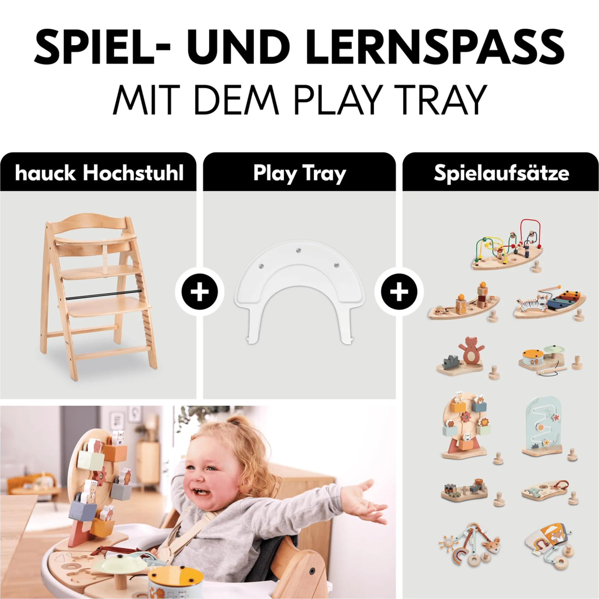 - mit dem Arketa Play Tray (separat erhältlich – Artikel-Nr. 58537340) zum Einklicken kannst du den Arketa Hochstuhl noch flexibler nutzen, denn dein Kind kann sich mit den individuell zusammenstellbaren Spielaufsätzen optimal beschäftigen