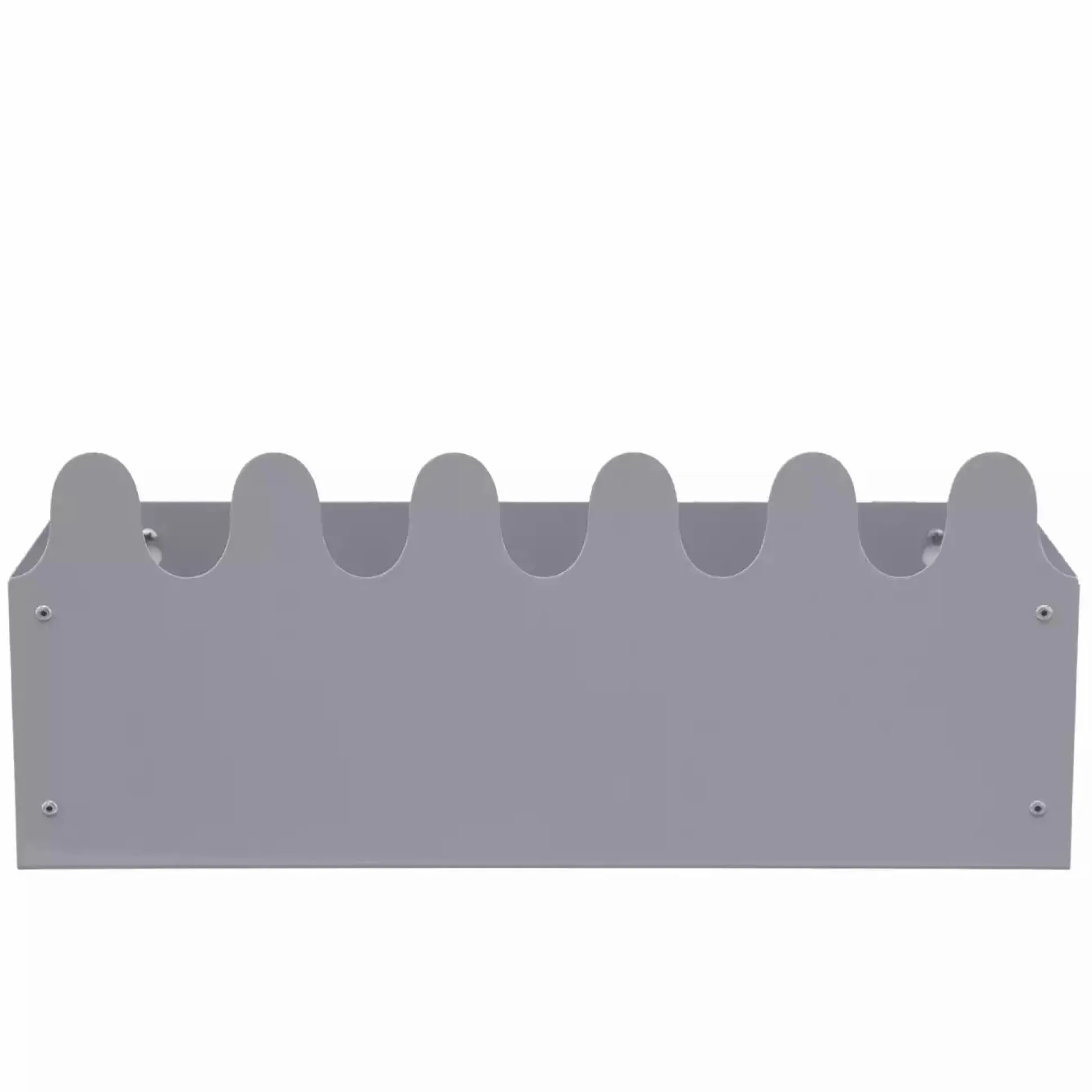 Die hübsche Aufbewahrungsgarderobe Sinus von Roommate sorgt nicht nur für Ordnung, sondern ist auch ein schickes Deko-Accessoire im Kinderzimmer. Das kleine graue Regal bietet viel Platz zum Aufbewahren oder Verstauen von Pflegeartikeln, Spielzeug, Büchern, Kuscheltieren und vielem mehr. So gehen auch kleine Dinge nicht mehr verloren oder fliegen durch die Gegend. Das praktische Aufbewahrungsregal aus pulverbeschichtetem Metall kann platzsparend an der Wand aufgehangen sowie einfach auf den Spieltisch, Wickeltisch oder in ein weiteres Regal gestellt werden.