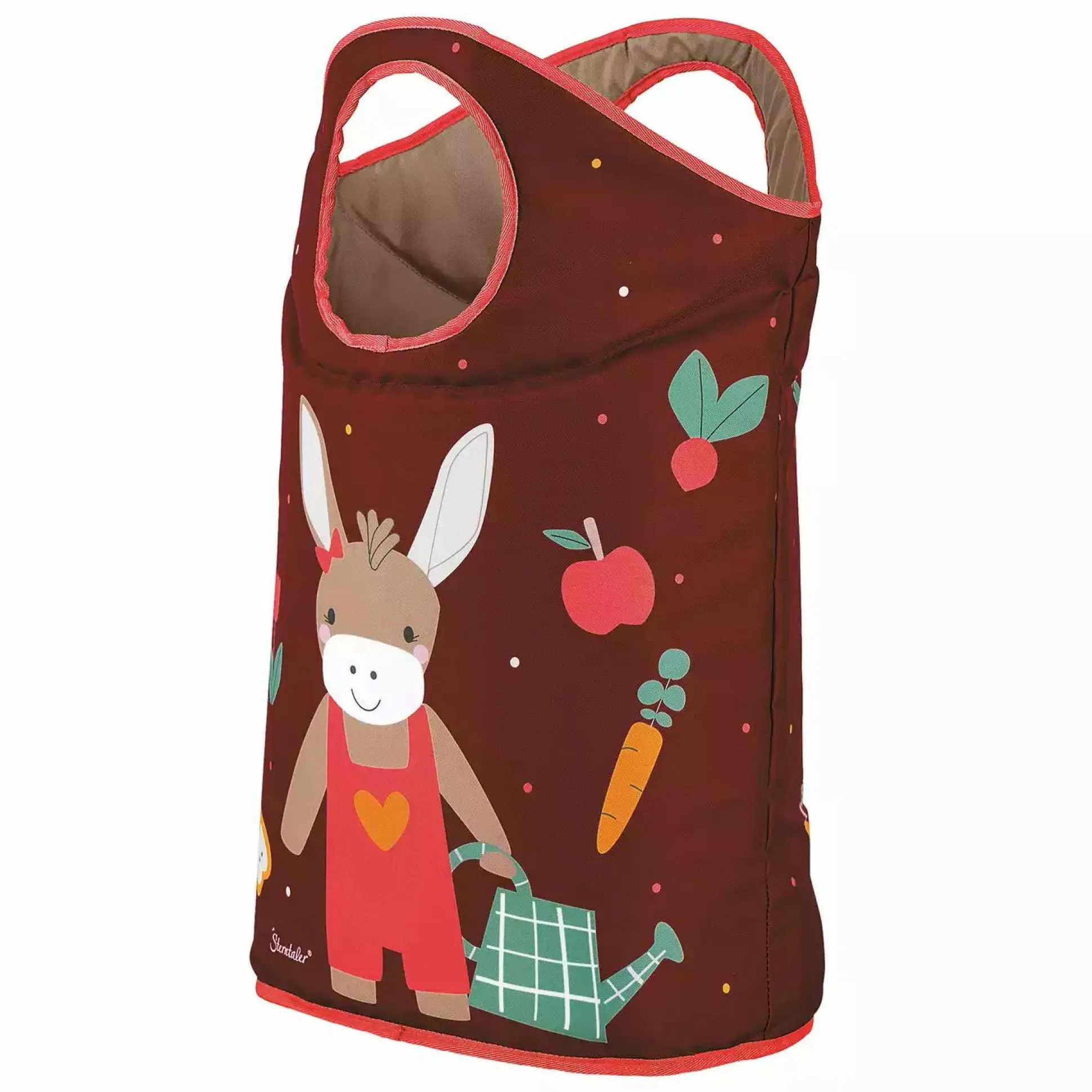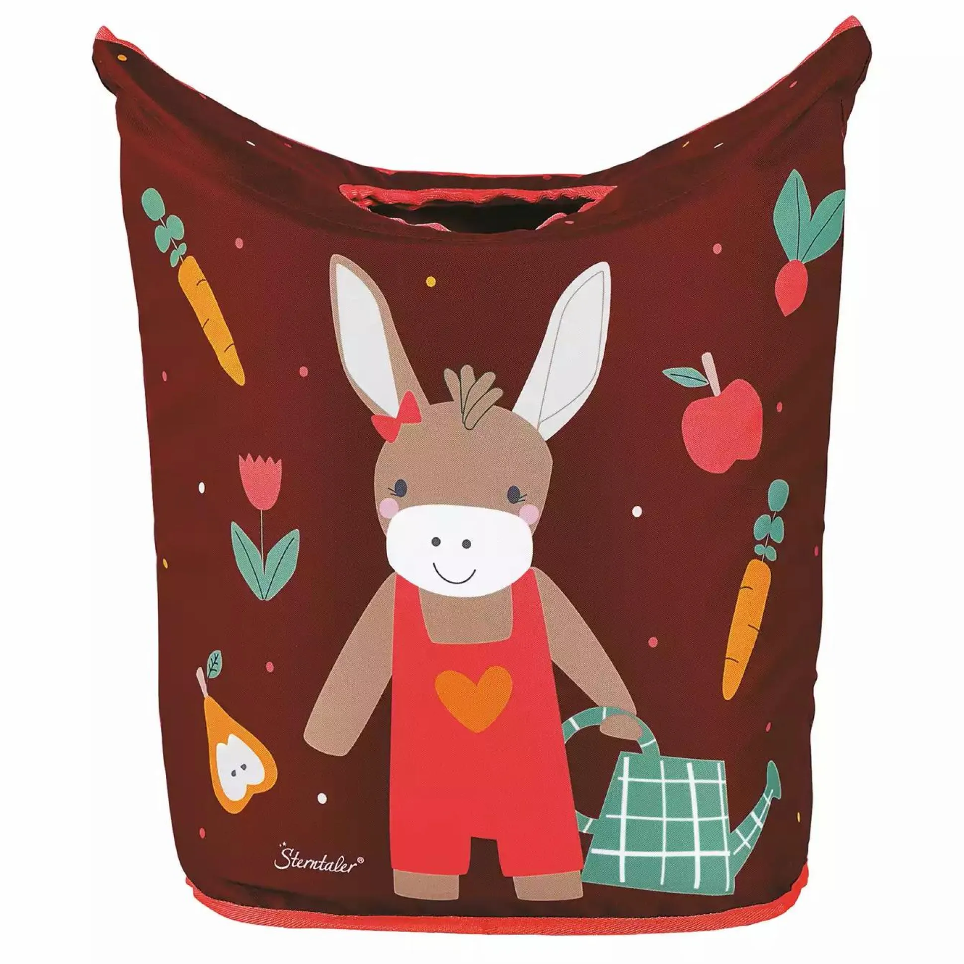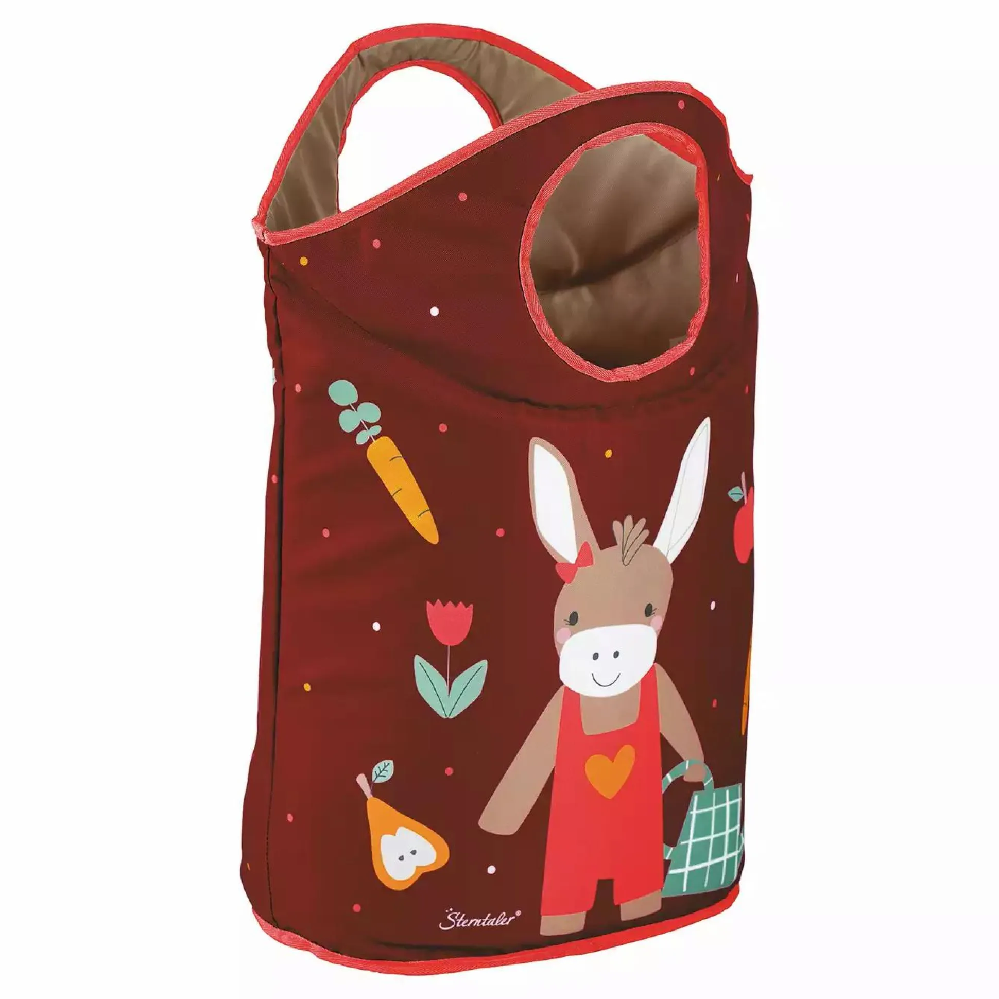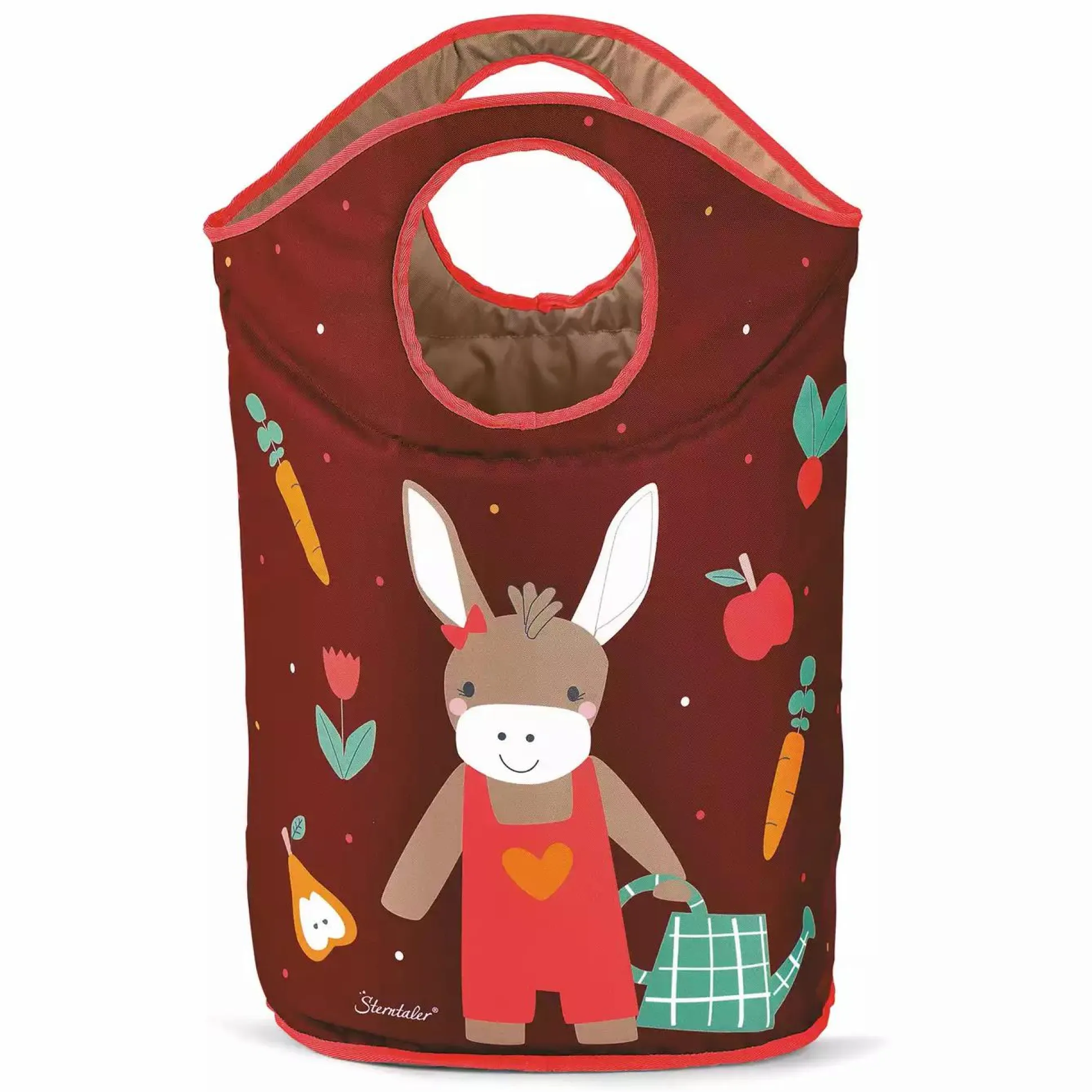 Dieser super praktische Aufbewahrungskorb von Sterntaler ist der ideale Alltagsbegleiter. Ob als Wäschekorb oder zum Aufbewahren von Spielzeug und Kuscheltieren – er passt ideal in das Zimmer deines kleinen Schatzes. Ist der Korb mit dreckiger Wäsche gefüllt, dann kannst du ihn ganz leicht, dank der daran befestigten Griffe, tragen und ausleeren. Zudem wird dein Nachwuchs spielerisch dazu animiert beim Aufräumen tatkräftig zu unterstützen. Der Korb im niedlichen Design „Esel Emmily“ strahlt in dunkelroten Tönen.