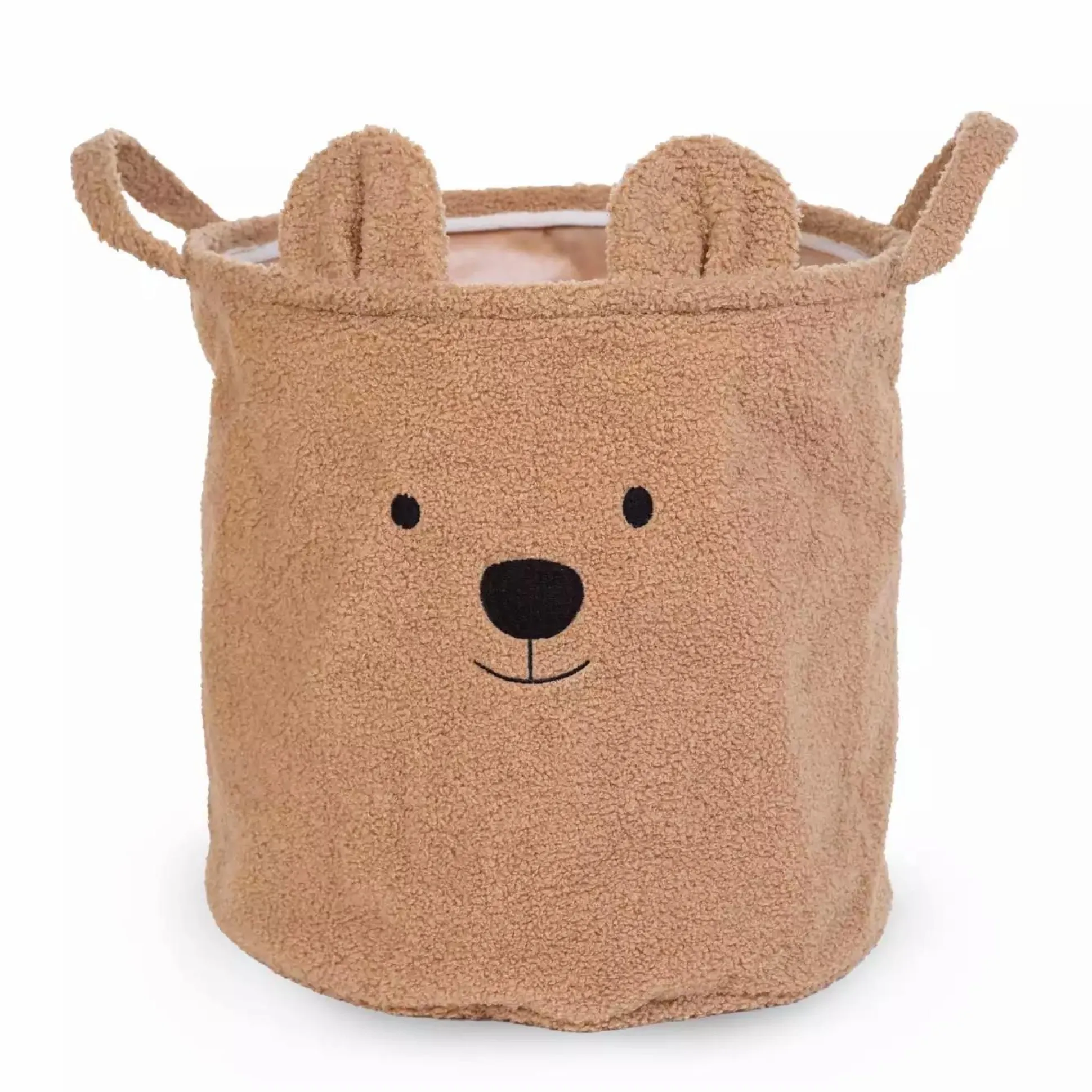 Der weiche Teddy-Stoff und die süßen Bärenohren sorgen sofort für eine fröhliche Note. Der Aufbewahrungskorb hat ein handliches Innenfutter, das leicht mit einem feuchten Tuch zu reinigen ist.