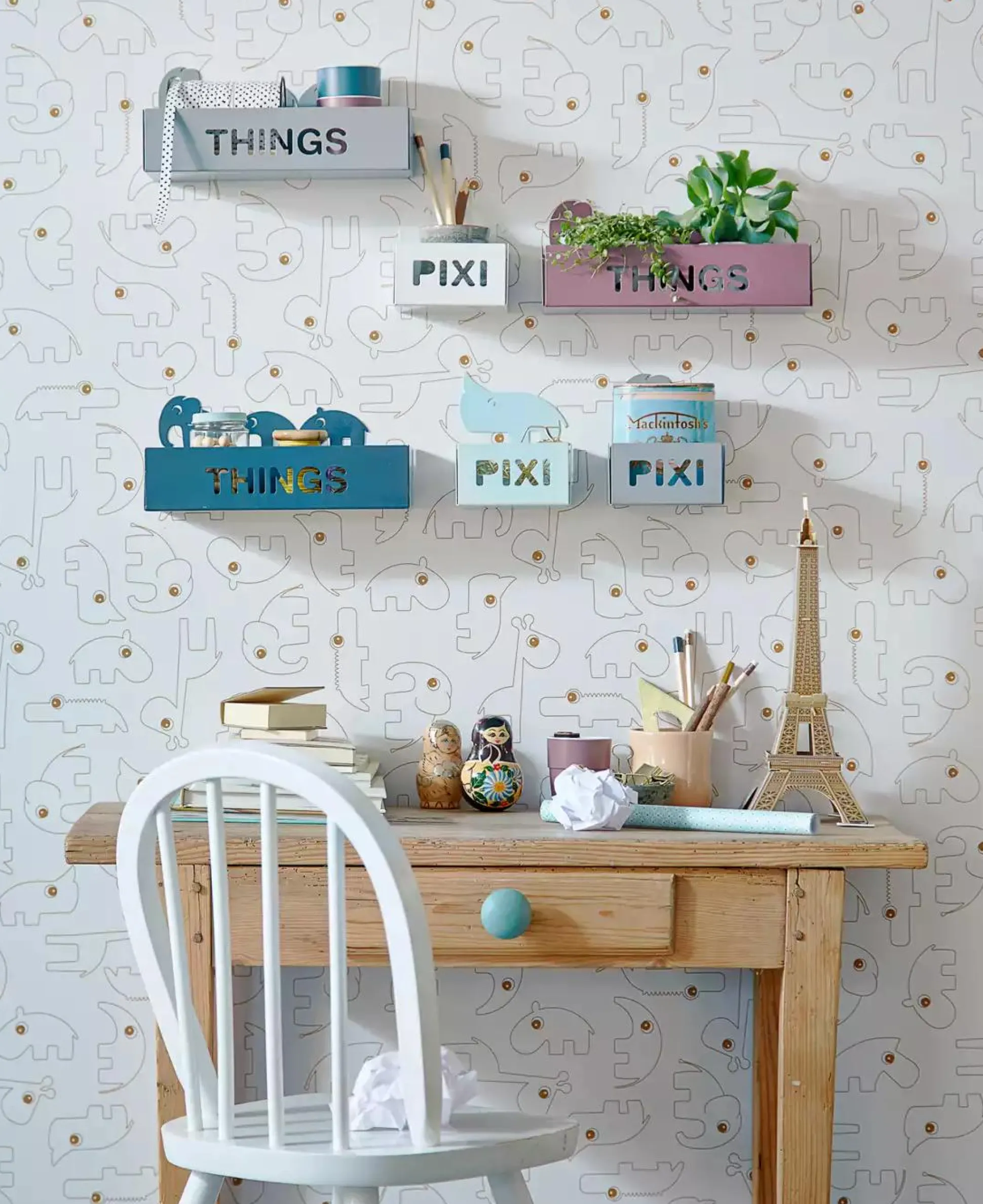 Das stabile Aufbewahrungsregal Elphee aus der Kollektion make my room von done by deer sorgt nicht nur für Ordnung, sondern ist auch ein schickes Deko-Accessoire im Kinderzimmer. Das kleine graue Regal mit 3 niedlichen done by deer Friends ist praktisch zum Aufbewahren oder Verstauen von Pflegeartikeln, Spielzeug, Büchern, Kuscheltieren und vielem mehr. So gehen auch kleine Dinge nicht mehr verloren oder fliegen durch die Gegend. Das praktische Aufbewahrungsregal aus Metall kann platzsparend an der Wand aufgehangen sowie einfach auf den Spieltisch, Wickeltisch oder in ein weiteres Regal gestellt werden.