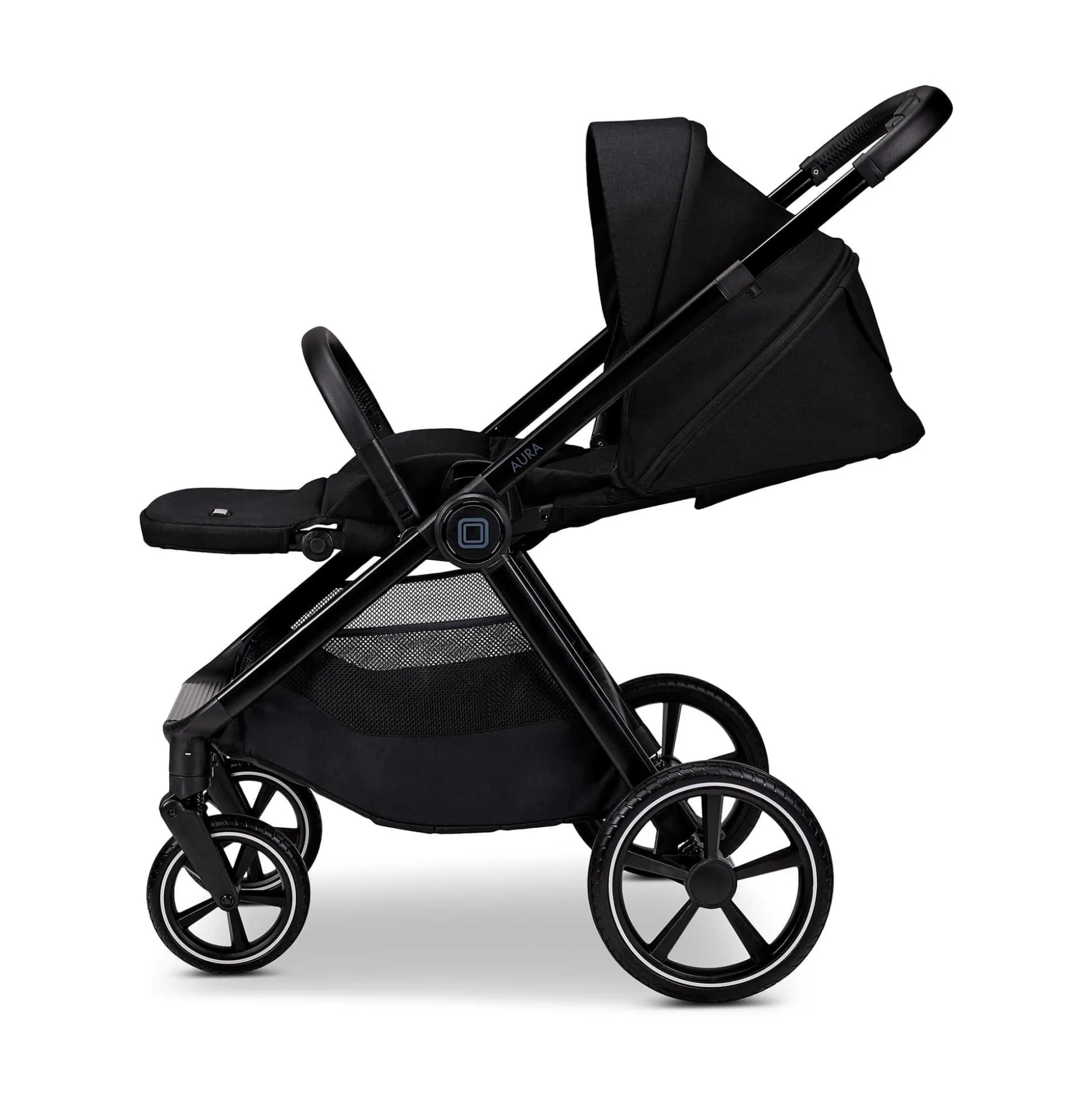 Und wenn dein Kind größer wird, kommt der umsetzbare Sportsitz zum Einsatz: mit seiner stufenlosen Liegefunktion bis 180° ist er ideal für Tagträumer und Weltentdecker zugleich. Und das Beste? Der AURA lässt sich sogar mit montiertem Sitz in beide Richtungen zusammenfalten.