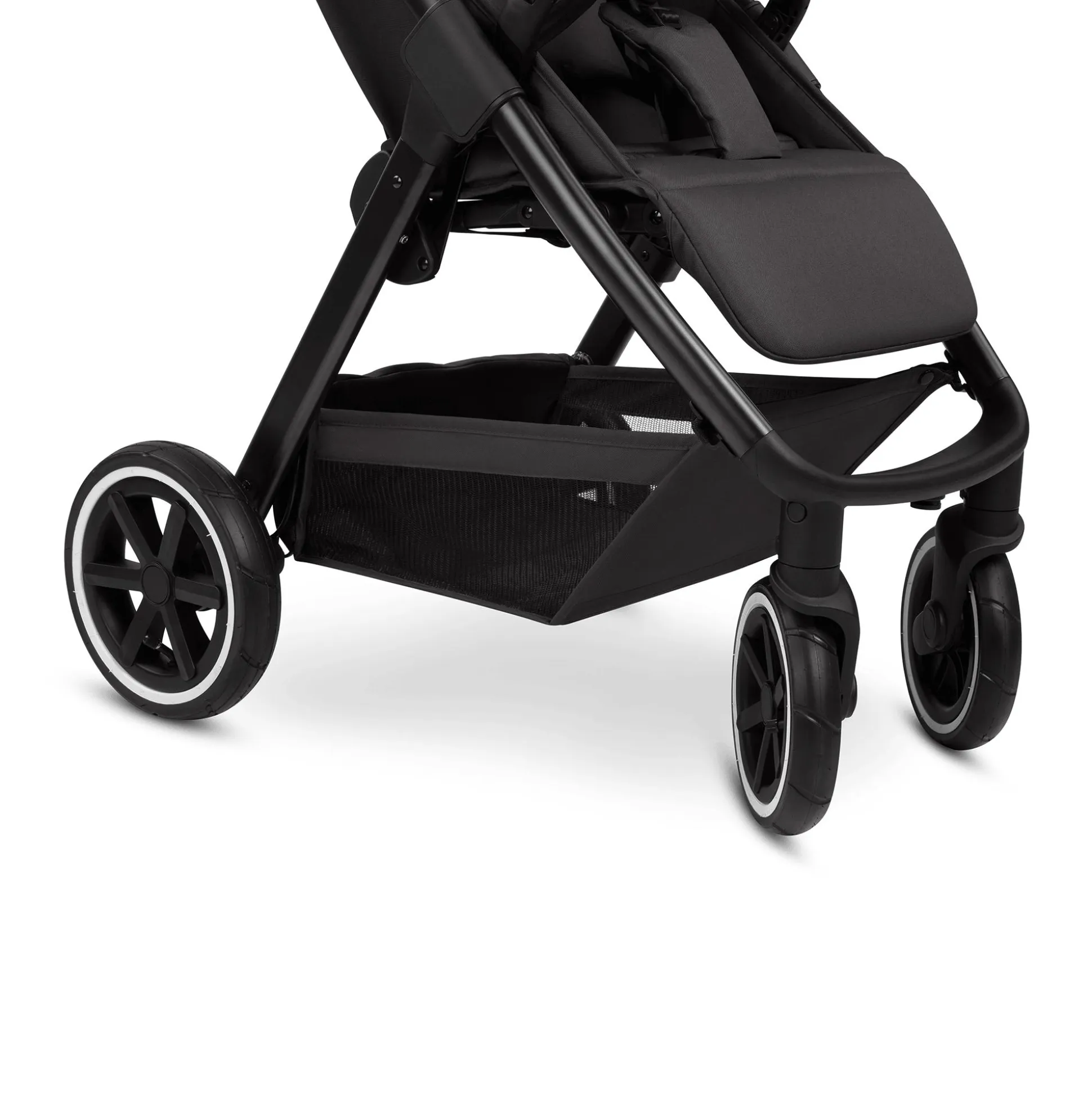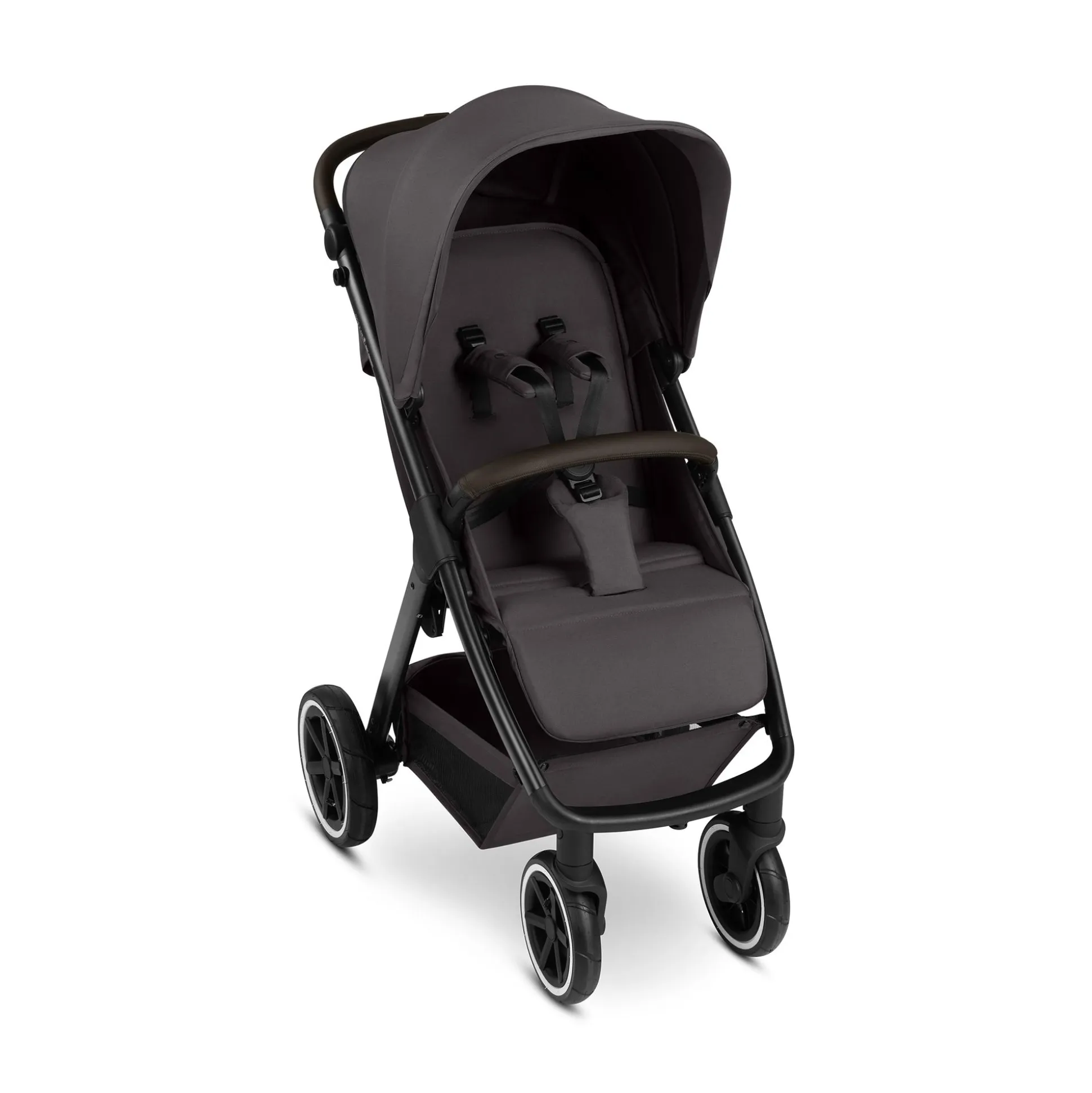 Apropos Räder: Die Vorderräder sind schwenkbar und bieten so eine hohe Wendigkeit. Am rechten Hinterrad kann der Buggy mit einer Bremse festgestellt werden. Das bedeutet auch, dass auf eine Hinterachse verzichtet wird und so Gewicht und Platz gespart werden. Das schafft dir mehr Beinfreiheit beim Schieben.