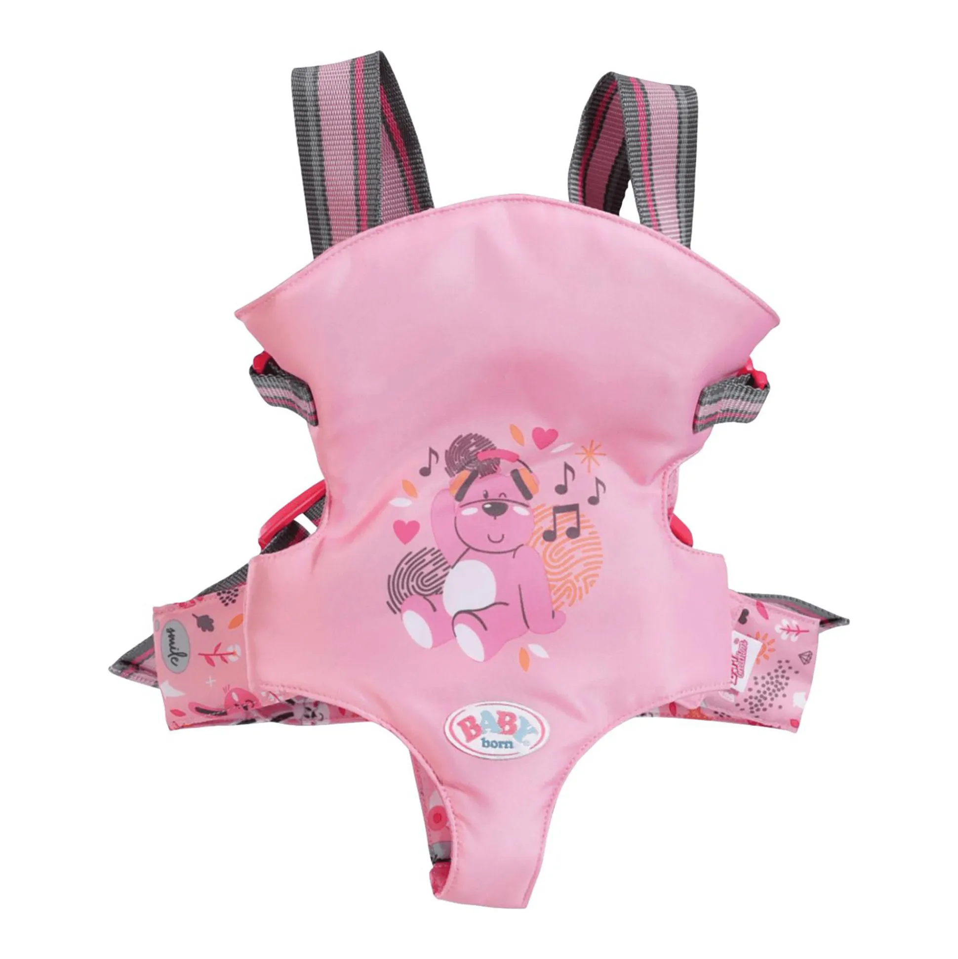 Das verspielte Design und die hohe Funktionalität machen die Babytrage zu einem praktischen Begleiter für ein fantasievolles und langanhaltendes Spielvergnügen.
