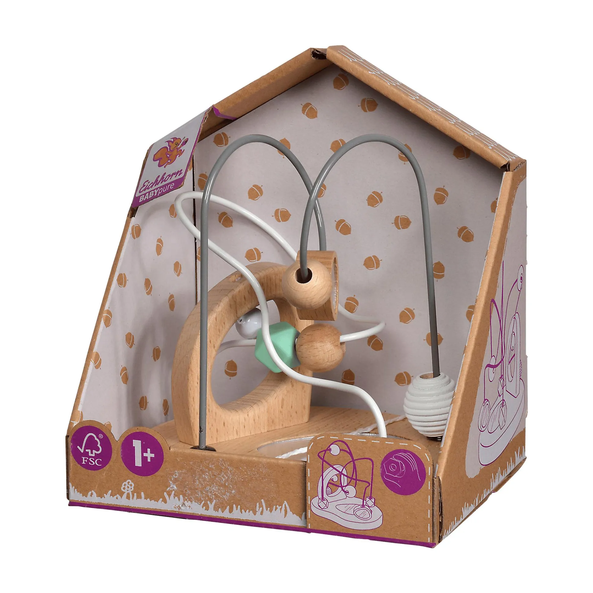 Die Baby Pure Motorikschleife von Eichhorn ist ein hochwertiges Spielzeug aus FSC-zertifiziertem Buchenholz, das speziell für Kinder ab etwa einem Jahr entwickelt wurde. Auf der stabilen Holzplatte befinden sich zwei bunte Schleifen sowie eine integrierte Spiegelfläche, die zum Entdecken und Staunen einladen.