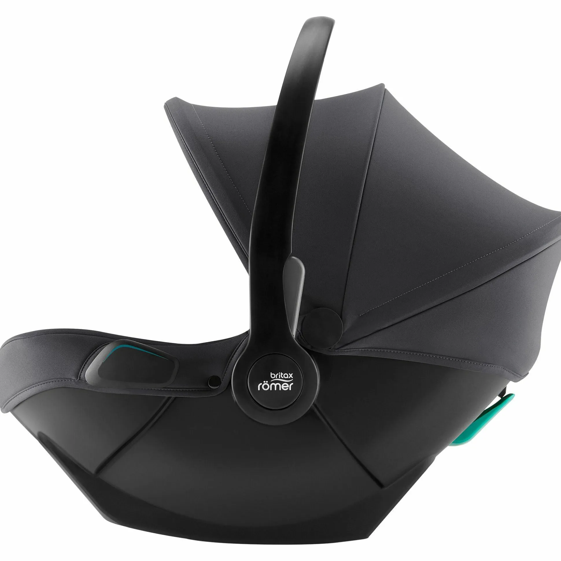 Nach Ankunft am Zielort lässt sich die – nur 3,9 kg wiegende – Babyschale so leicht wie bequem per Tragegriff herausnehmen und tragen. Superpraktisch: Beim Abstellen der Babyschale kann der Tragebügel als Stütze nach hinten gestellt werden und verhindert somit ein ungewolltes Schaukeln.