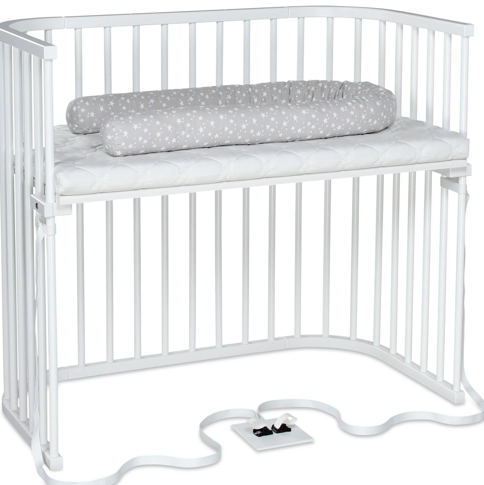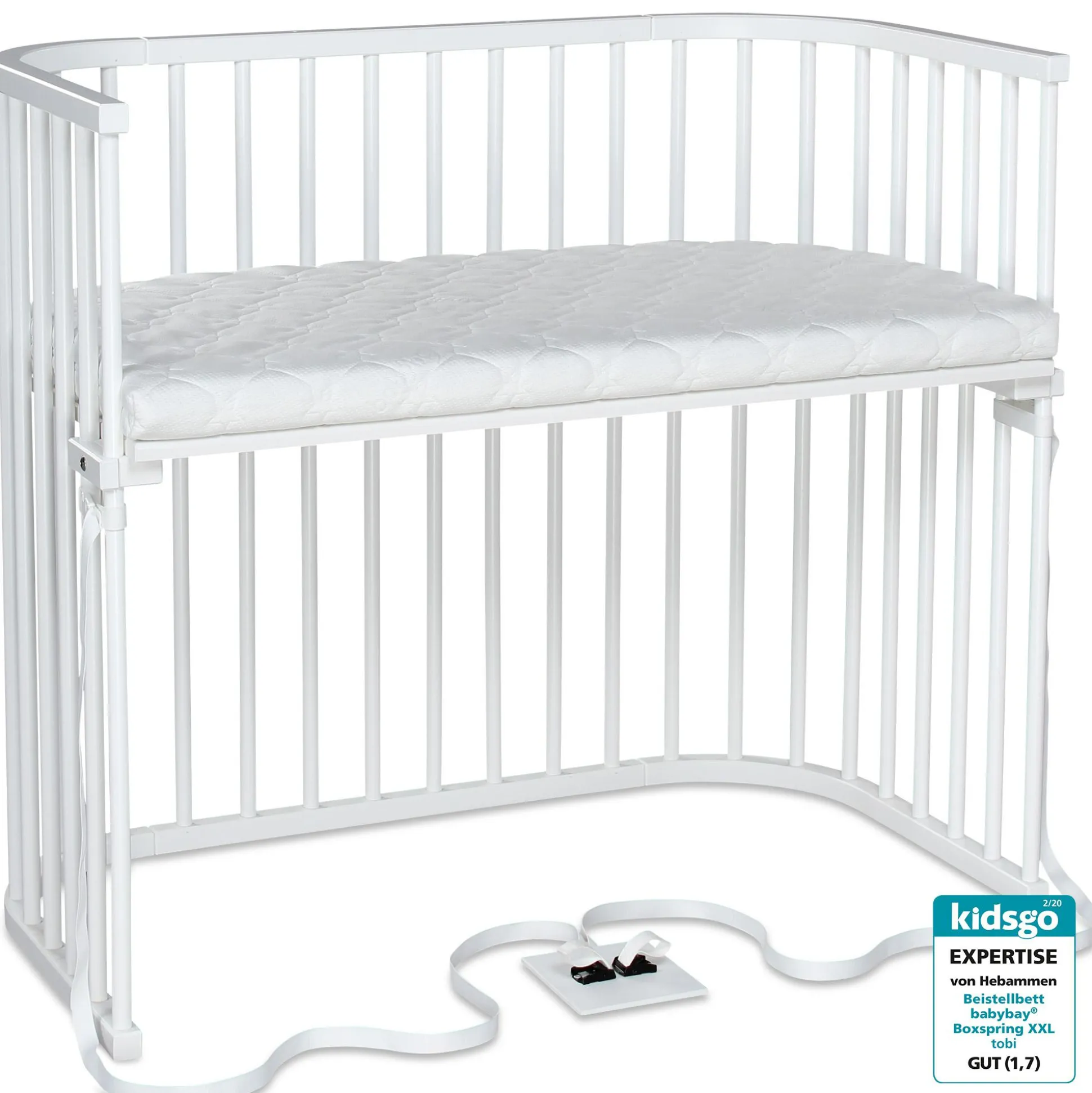 Das babybay® Boxspring XXL weiß von tobi ist die perfekte Lösung für alle hohen Betten. Aufgrund der hohen Bauweise und der patenten stufenlosen Höhenverstellung lässt sich die Liegefläche exakt an hohe und rahmenlose Boxspring-Betten anpassen – ohne Stufe, ohne Spalt. Immer bündig auf einer Ebene mit Mamas Bett – das A und O eines Beistellbetts. Gerade in den ersten Monaten ist der enge Kontakt zwischen dir und deinem Baby sehr wichtig, mit der extra großen XXL Liegefläche, kannst du die Nähe zu deinem kleinen Liebling noch länger genießen. babybay® Boxspring XXL ist daher auch ideal für Zwillinge geeignet. Mit der speziellen Gurtbefestigung lässt es sich kinderleicht, sicher und werkzeuglos an jedem Boxspringbett befestigen und wieder lösen. Die Lacke sind schadstofffrei und entsprechen den Normen EN71.3. Das Buchenholz stammt aus nachhaltig bewirtschafteten, heimischen Wäldern. Es wird komplett aus natürlichem, antibakteriellem und antistatischem Buchenvollholz gefertigt – ohne Kompromisse, ohne Holzersatzstoffe.