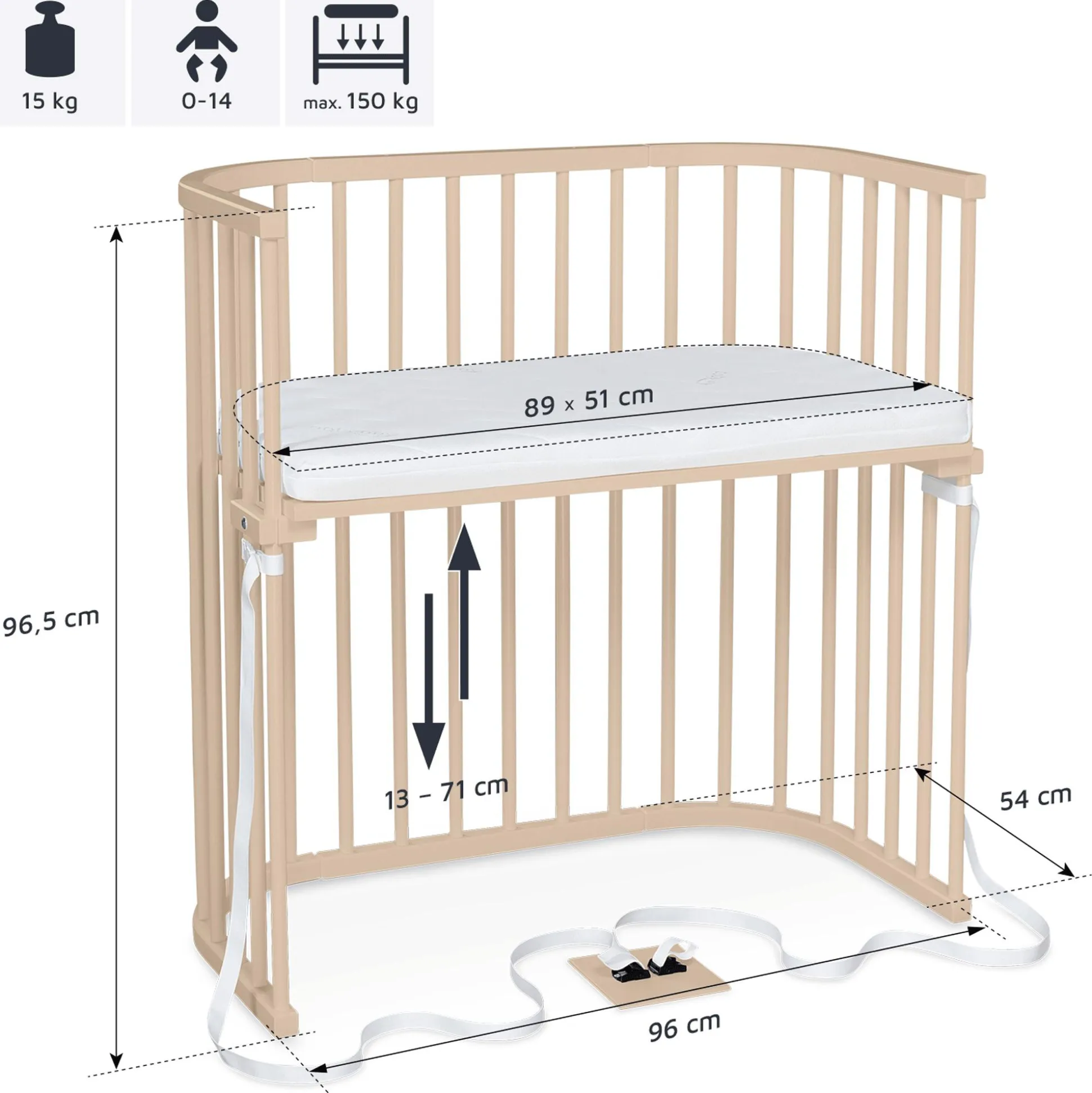 - spezielle Gurtbefestigung für einfache und schnelle Anbringung am Elternbett