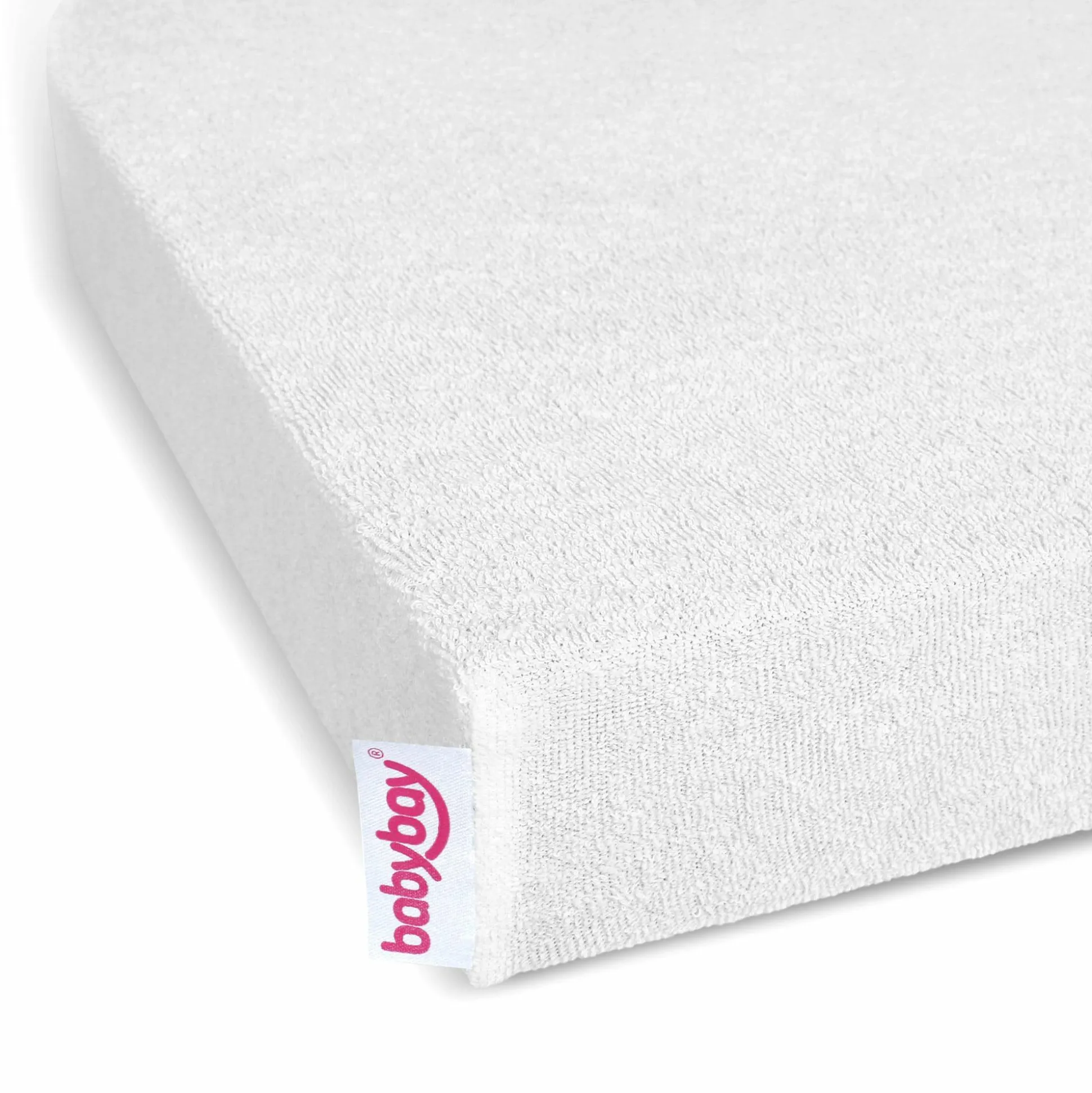 Ein Bezug aus angenehm weichem, strapazierfähigem Frottee mit exakter Passform für Ihre babybay® Matratze für das Modell Original. Durch einen elastischen Gummizug einfach zu wechseln. Das Spannbetttuch ist aus 80% Baumwolle und 20% Polyester, bis 60°C maschinenwaschbar und trocknergeeignet. Schadstoffgeprüft und ausgezeichnet mit dem Zertifikat „Textiles Vertrauen“ nach Ökotex-Standard 100 Klasse 1 für Babys (12.0.03346).