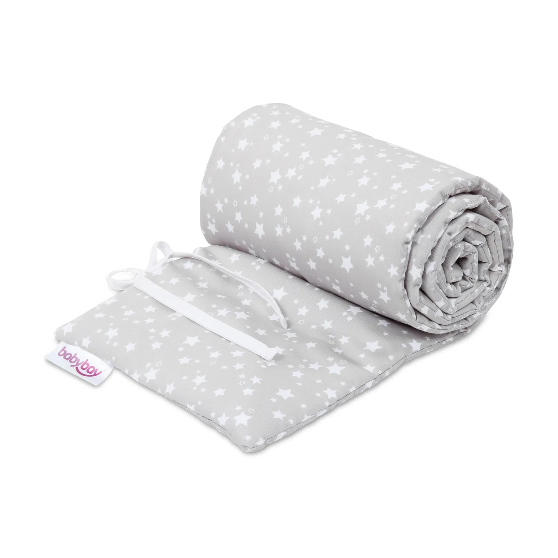 Mit diesem schönen Nestchen wird aus babybay® ein ganz individuelles Traumbettchen. Es ist passend für das babybay Bett Maxi, Boxspring und Comfort. Das Baby ist rundum geborgen und vor Umweltreizen,Zugluft und Gitterstäben geschützt. Das atmungsaktive Nestchen sorgt für eine optimale Luftzirkulation – nicht zu viel, nicht zu wenig. Durch Schleifen lässt sich das Nestchen leicht und sicher befestigen und zum Waschen jederzeit abnehmen. Das Nestchen ist auf Schadstoffe geprüft und mit dem Zertifikat „Textiles Vertrauen“ nach Ökotex-Standard 100 Klasse 1 für Babys ausgezeichnet. Ein wunderschöner Allover-Print mit Sternen verziert das Nestchen.