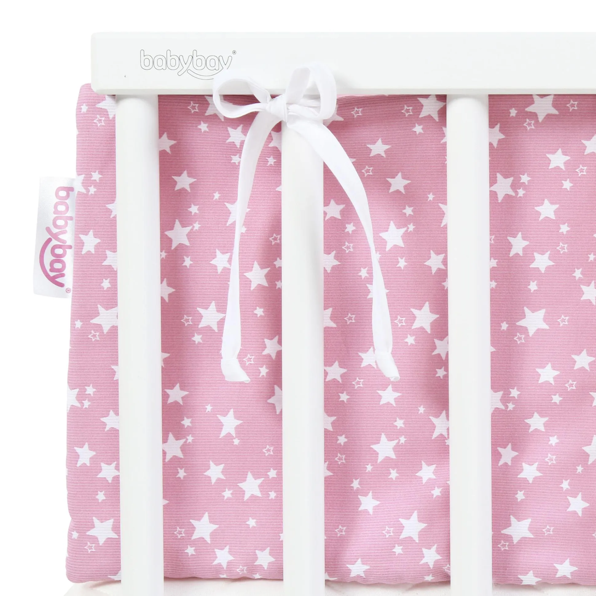 Mit dem gemusterten Nestchen aus zartem Piqué mit leichter Struktur wird aus den babybay® Modellen Maxi, Boxspring und Comfort ein ganz individuelles Traumbettchen. Das Baby ist rundum geborgen und vor Umweltreizen oder Zugluft geschützt. Durch Schleifen lässt sich das Nestchen leicht und sicher befestigen und zum waschen (bei 40° Schonwäsche) jederzeit abnehmen. Das Nestchen ist auf Schadstoffe geprüft und ausgezeichnet mit dem Zertifikat „Textiles Vertrauen“ nach Ökotex-Standard 100 Klasse 1 für Babys (12.0.03346).