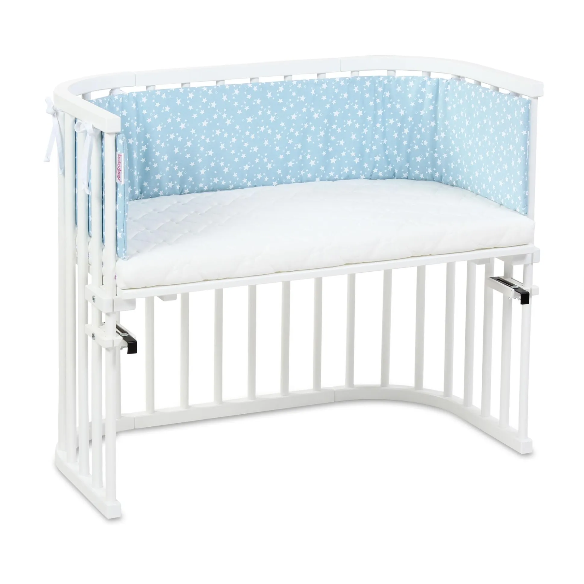 Mit dem gemusterten Nestchen aus zartem Piqué mit leichter Struktur wird aus den babybay® Modellen Maxi,Boxspring und Comfort ein ganz individuelles Traumbettchen. Das Baby ist rundum geborgen und vor Umweltreizen oder Zugluft geschützt. Durch Schleifen lässt sich das Nestchen leicht und sicher befestigen und zum Waschen (bei 40° Schonwäsche) jederzeit abnehmen. Alle Nestchen sind auf Schadstoffe geprüft und ausgezeichnet mit dem Zertifikat „Textiles Vertrauen“ nach Ökotex-Standard 100 Klasse 1 für Babys (12.0.03346).