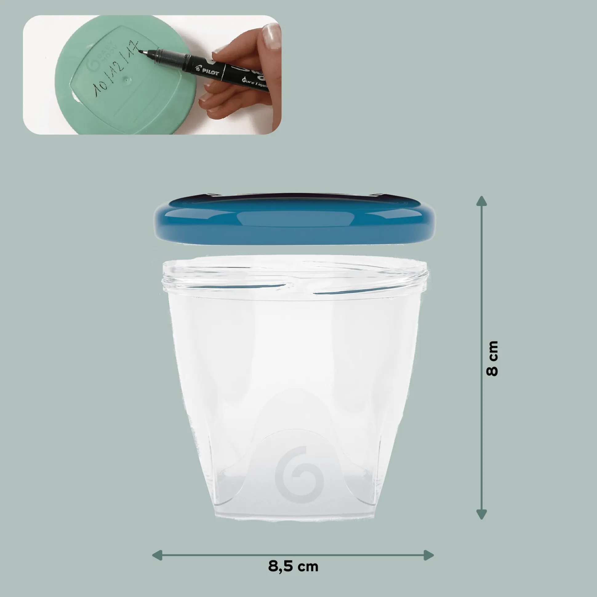 Die Babybols eignen sich praktischerweise für die Aufbewahrung von Babynahrung – auch für unterwegs. Sie lassen sich leicht reinigen und ineinander stapeln. Für einen luftdichten Verschluss sorgt der beschreibbare Deckel.
