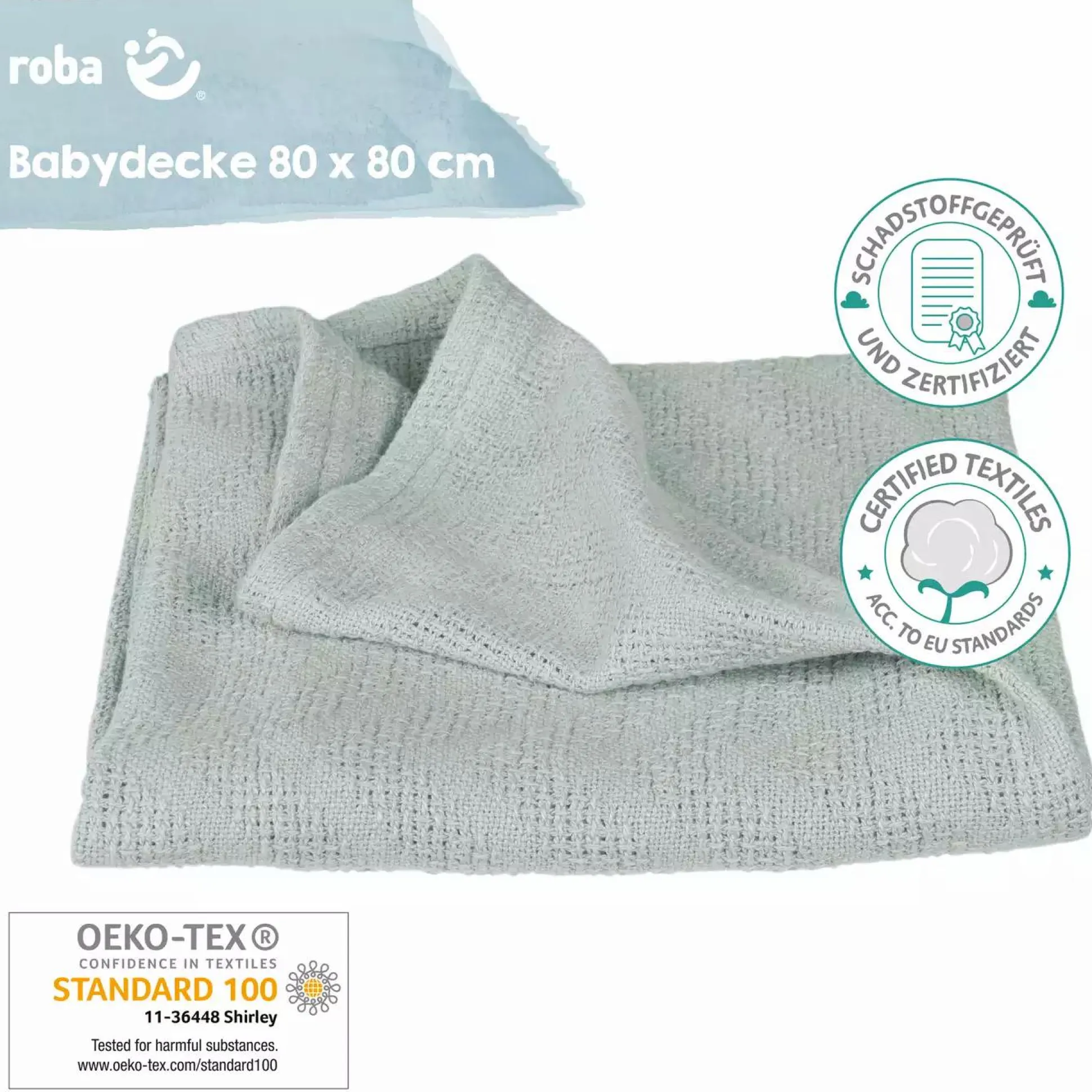 Auch nach vielen umweltfreundlichen Wäschen bei 40°C behält die Roba Babydecke in der trendigen Farbe Frosty Green ihre Form und ihre superweiche Haptik – dank spezieller Oberflächenbehandlung und Vorwäsche bleibt sie superweich. Die Babydecke wird nachhaltig nach dem Global Organic Textile Standard GOTS und unter fairen und sozialen Bedingungen der Business Social Compliance Initiative (BSCI) hergestellt.