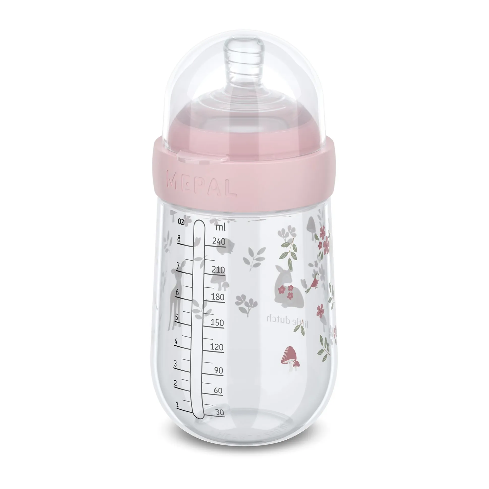Die Babyflasche Mio Fairy Garden von Mepal fasst ca. 240 ml und überzeugt durch ihre durchdachte, ergonomische Form, die angenehm in der Hand liegt.Sie eignet sich ideal für zuhause und unterwegs und begeistert mit liebevollen Motiven.