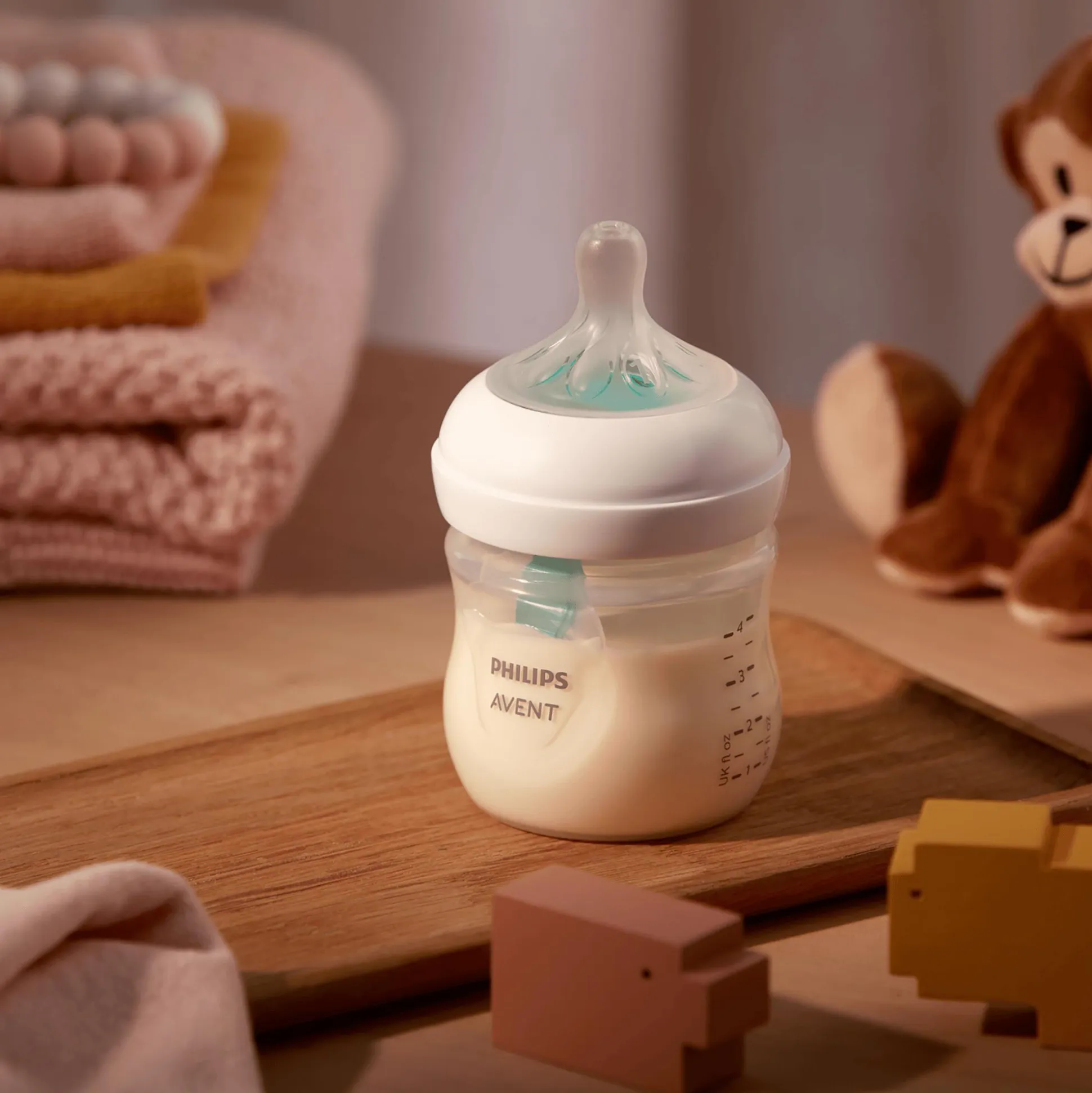 Der Natural Response Sauger passt sich dem natürlichen Rhythmus des Babys beim Saugen, Schlucken und Atmen an und gibt nur Milch ab, wenn das Baby aktiv trinkt. So wird ein Nachschlucken verhindert und das Risiko von Koliken, Blähungen und Reflux reduziert. Das AirFree Ventil sorgt dafür, dass beim aufrechten Füttern keine Luft in den Bauch gelangt. Die Flasche ist ergonomisch geformt, leicht zu halten und einfach zu reinigen. Die langsame Durchflussrate unterstützt besonders Neugeborene beim sicheren Trinken und erleichtert die Umstellung zwischen Stillen und Flaschenernährung. Der breite, weiche Sauger imitiert die Brustform und ermöglicht naturnahes Trinken. Tropfsicheres Design verhindert Verschlucken, während die BPA-freien Materialien für Sicherheit sorgen.