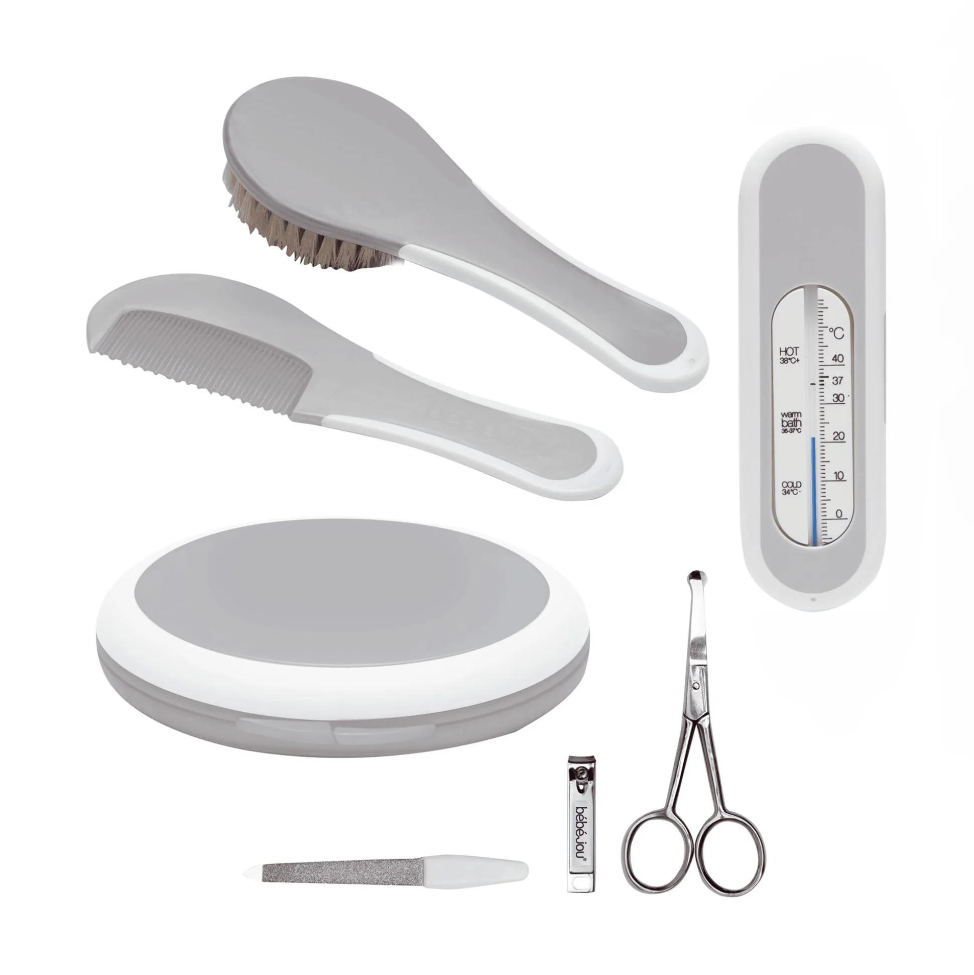 - Set enthält Kamm und Bürste, Maniküre-Set und Badethermometer
