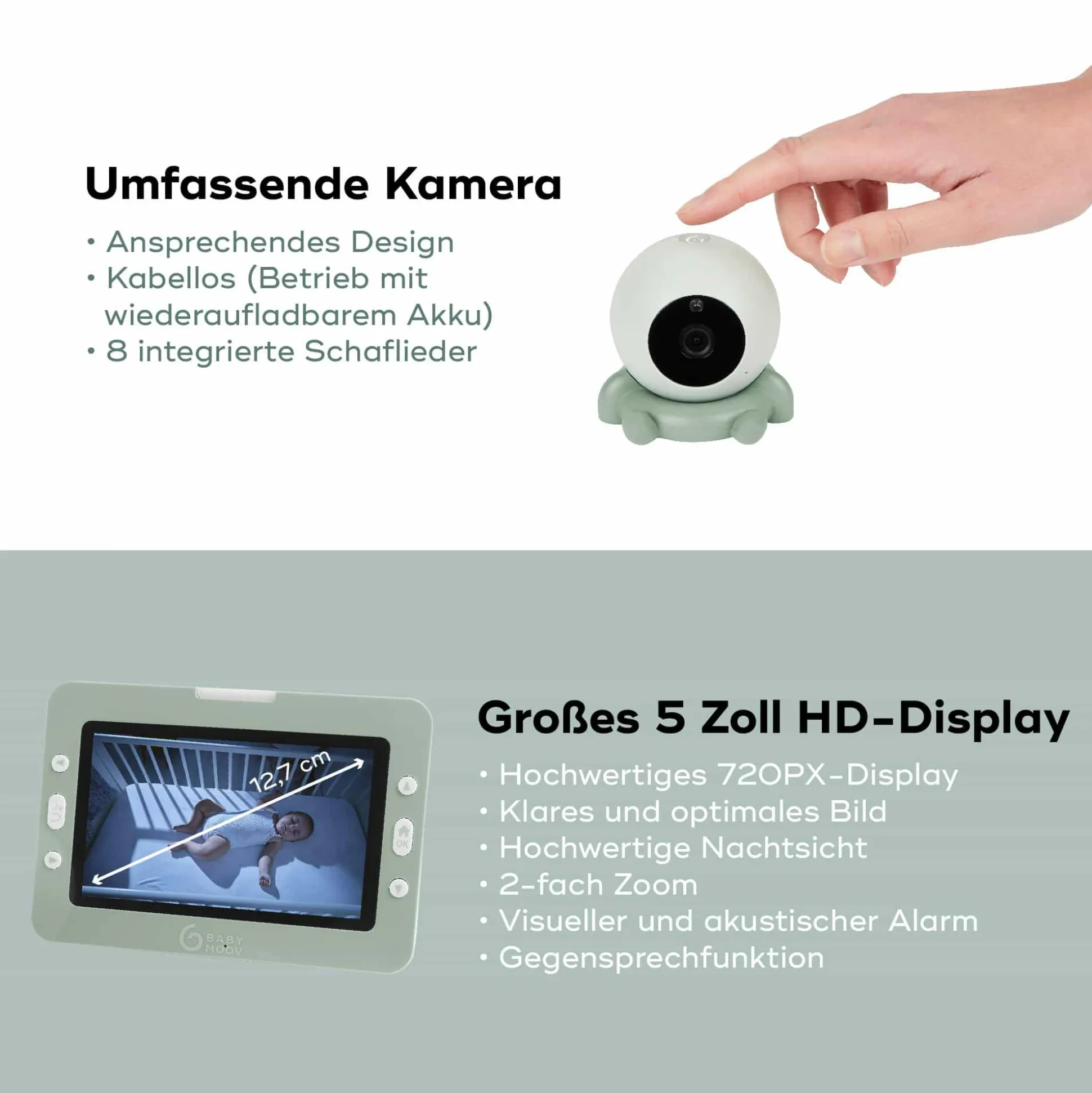 - Babyphone mit 5-Zoll-HD-Display mit 720P-Qualität