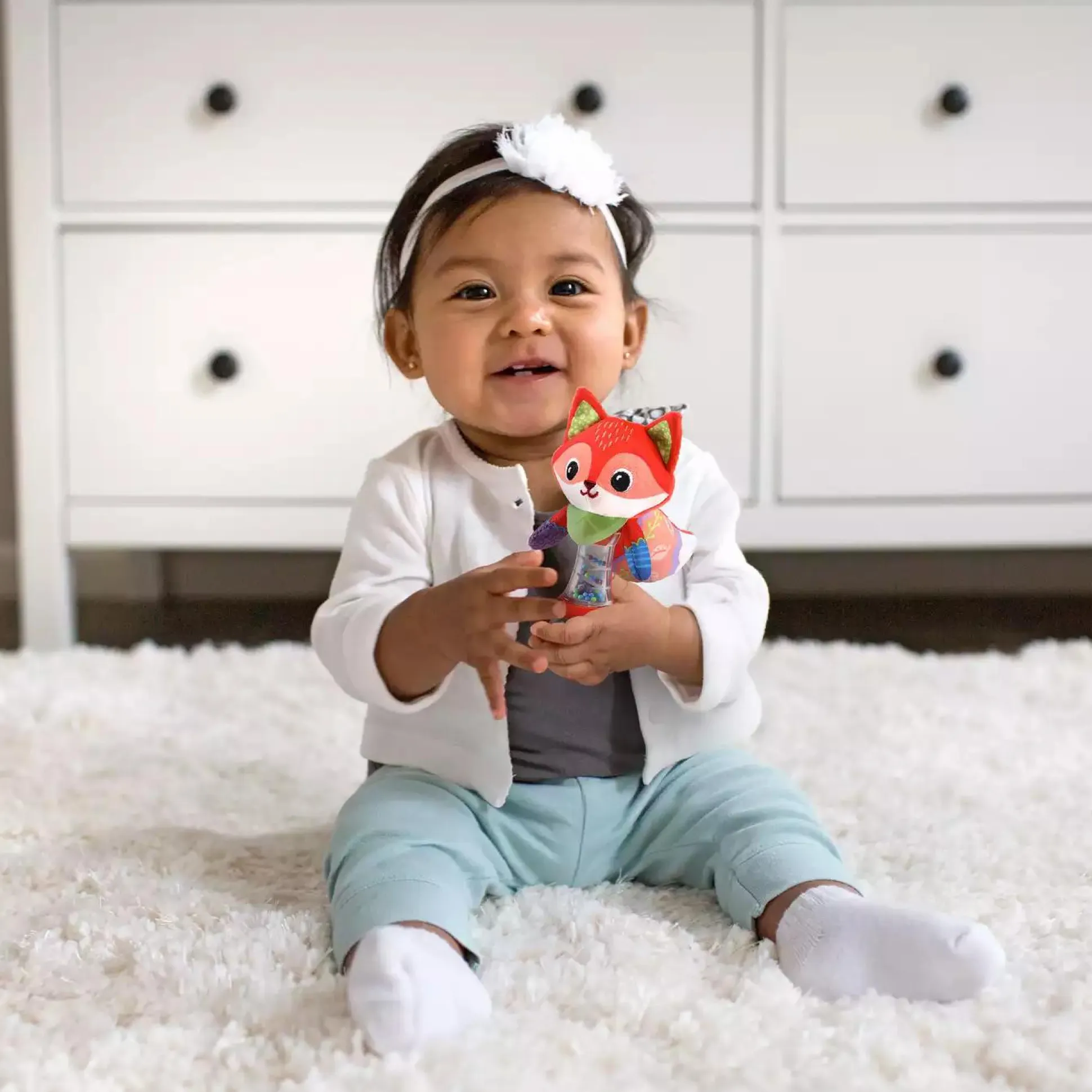 Rasseln, spielen und staunen – das ist die Babyrassel von Vtech. Die Fuchs-Babyrassel wird deinem kleinen Schatz ein Lächeln aufs Gesicht zaubern. Sie ist perfekt für Babyhände sowie die Förderung der motorischen Fähigkeiten geeignet. Zudem wird dein Kind großen Spaß haben, wenn es die bunten Perlen beobachtet, wie sie die Rassel im Zickzack hinunterrutschen.