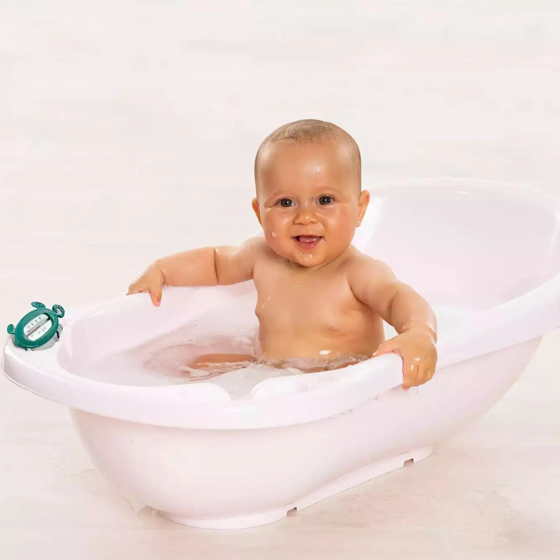 Mit dem Reer Badethermometer im niedlichen Schildkörten Design haben deine Liebsten und du die Temperatur in der Badewanne bestens im Blick. Die übersichtliche Skala zeigt dir den genauen Wert von 0° bis max. 50° an. Der Badethermometer ist zudem quecksilber – und BPA-frei.