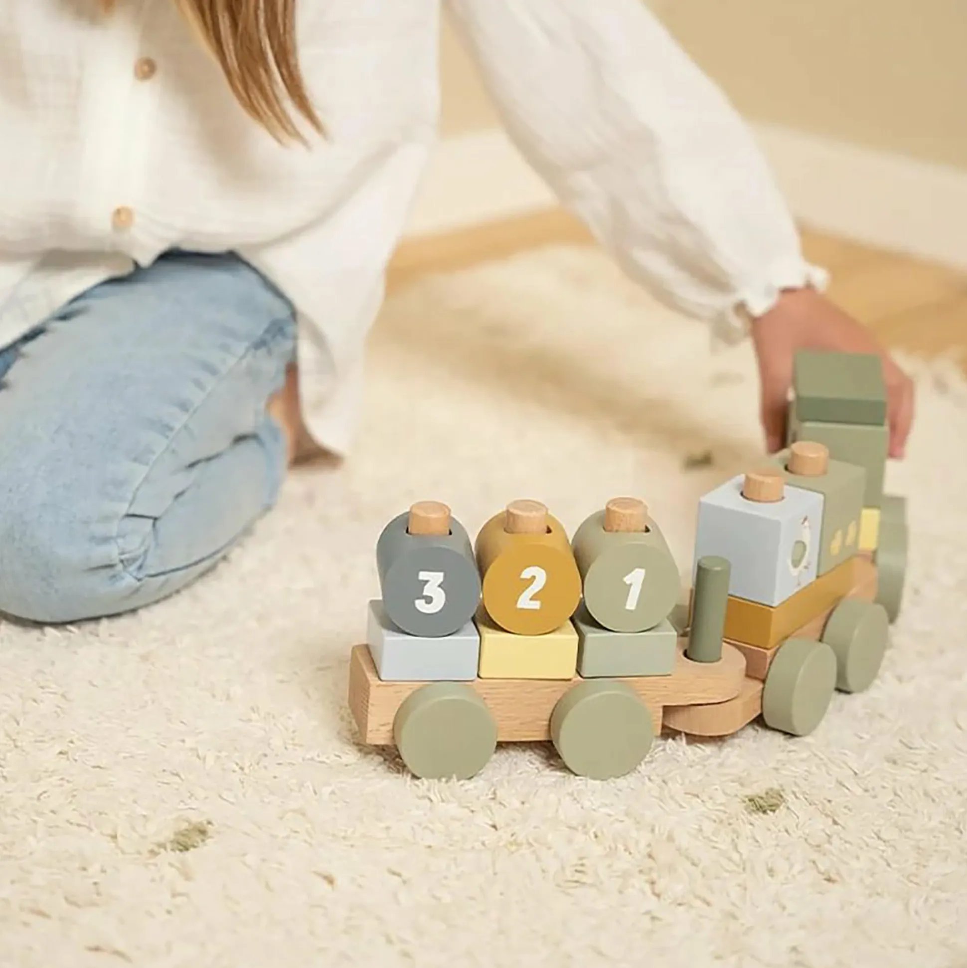 Der Zug besteht aus insgesamt 16 Klötzen, die sich immer wieder neu stapeln und kombinieren lassen, was die Kreativität und Vorstellungskraft kleiner Baumeister ordentlich ankurbelt.