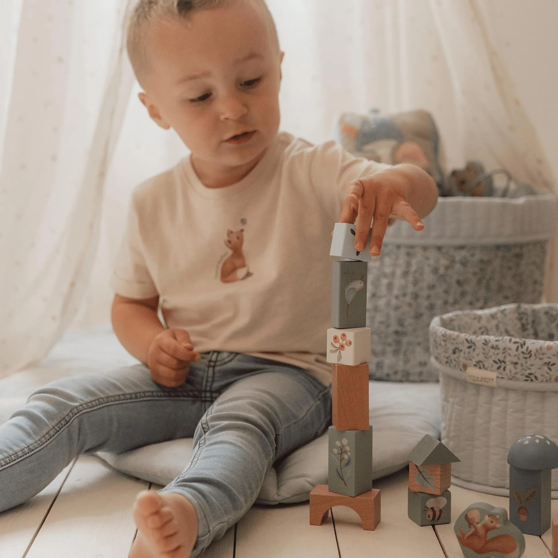 - aufregende Holzklötze mit bezaubernden Elementen aus der Forest Friends-Kollektion