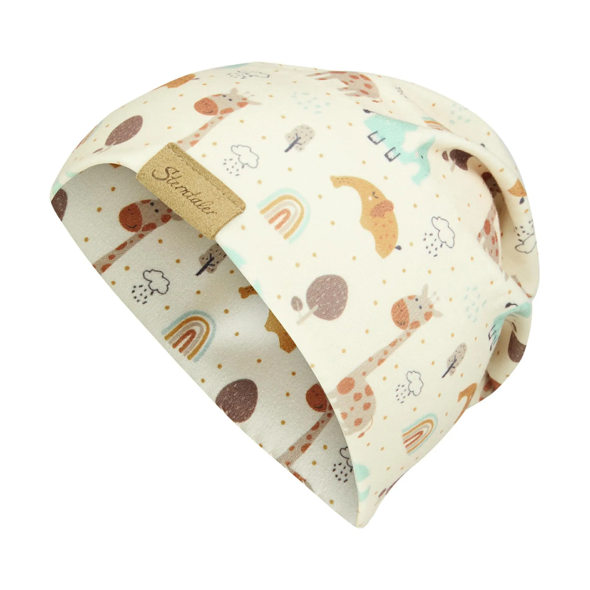 Die Beanie Giraffen und Elefanten von Sterntaler besteht aus weichem Soft Touch Jersey und schmiegt sich angenehm an das kleine Köpfchen deines Lieblings an. Der niedliche Print mit Giraffen und Elefanten macht sie zu einem liebevollen Accessoire, das sowohl mit als auch ohne Umschlag getragen werden kann. Das Material aus Polyester und Elasthan sorgt für hohen Tragekomfort, ist angenehm weich und besonders anschmiegsam.