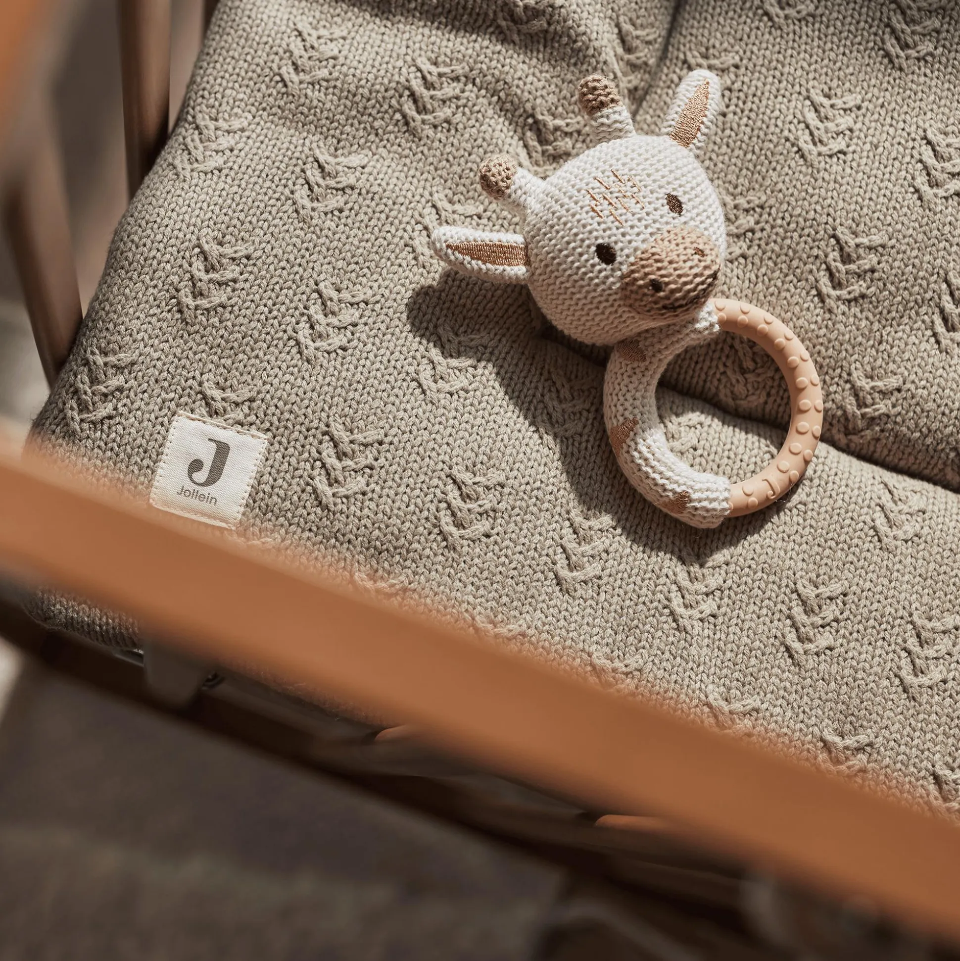 Der Beißring Giraffe von Jollein unterstützt dein Baby in der Entwicklung und spendet ausreichend Trost. Der niedliche Giraffenkopf aus weichem Strickmaterial ist mit kleinen Glöckchen versehen, die sanfte Klänge erzeugen und die Sinne deines Babys anregen.Außerdem ist er besonders weich und eignet sich ideal für zahnende Babys. Ein liebevolles Geschenk, das von Geburt an Freude bereitet.